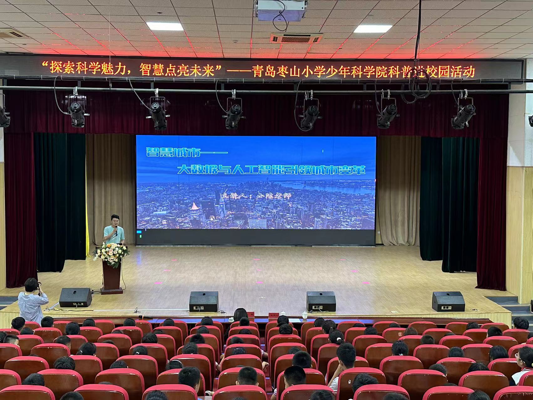 6月4日下午,澳门十大信誉好的网站研究生党支部“数智先锋讲师团”走进青岛市枣山小学少年科学院,开展“探索科学魅力,智慧点亮未来”主题活动,讲师团成员2022研究生陈鹏运为在场的师生带来了别开生面的《智慧城市》主题科普讲座。