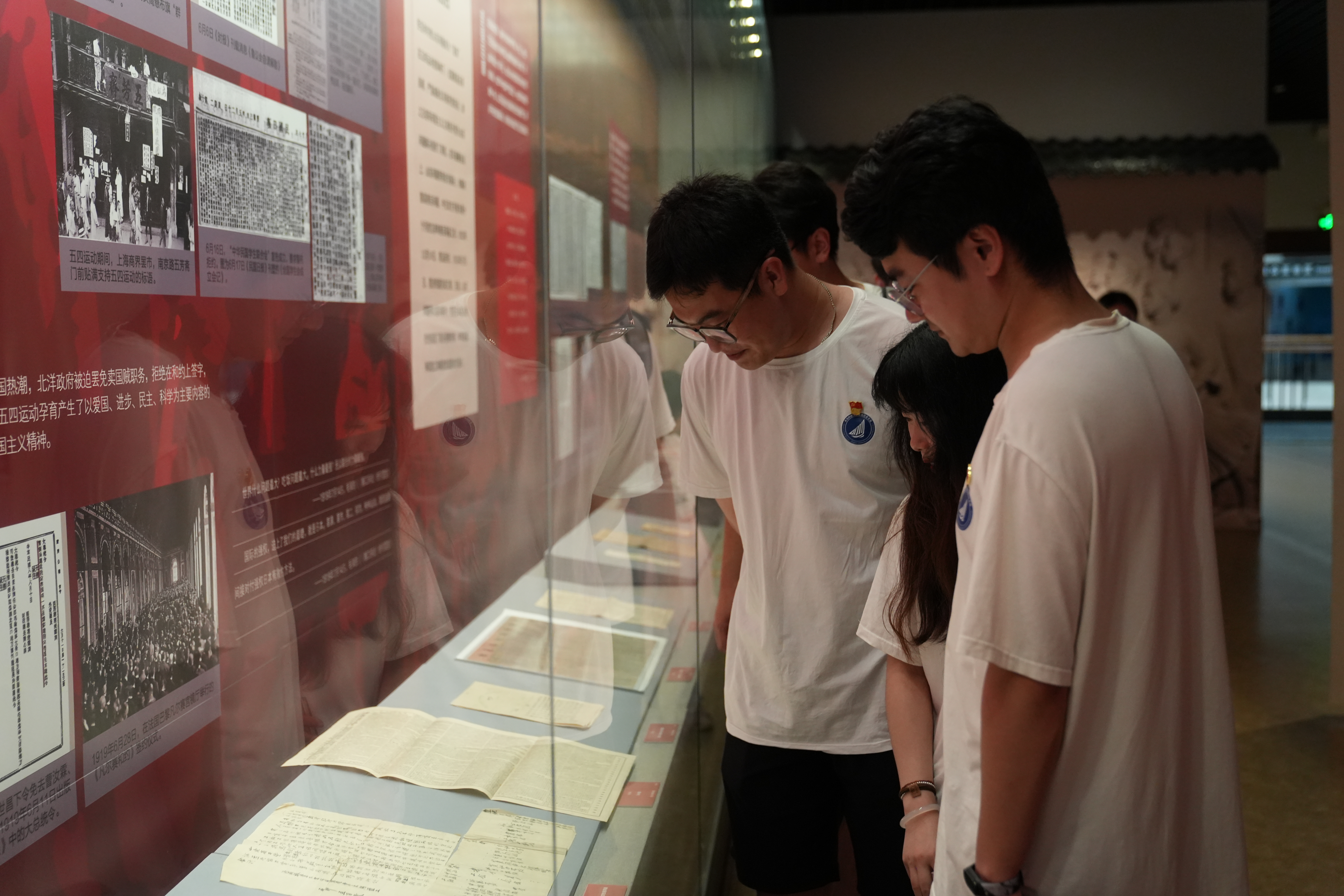 此次党员“开学第一课”来到青岛市博物馆,共同参观了“五月的风”——纪念五四运动105周年展厅。展厅内,一件件珍贵的革命文物,无声地诉说着五四运动时期那段血与火的历史。这些文物不仅承载着革命先辈们坚如磐石的信仰信念,更彰显着历久弥新的初心使命。同学们在参观过程中,仿佛穿越时空,重新见证了中国代表团在巴黎和会上的卓越表现。那“誓死力争,还我青岛”的口号,如同穿越百年的回响,激励着每一位在场的学生党员。党员们深入了解了五四运动的背景与精神内涵,深刻感受到了革命先辈们为国家独立、民族解放所付出的巨大牺牲和不懈努力。