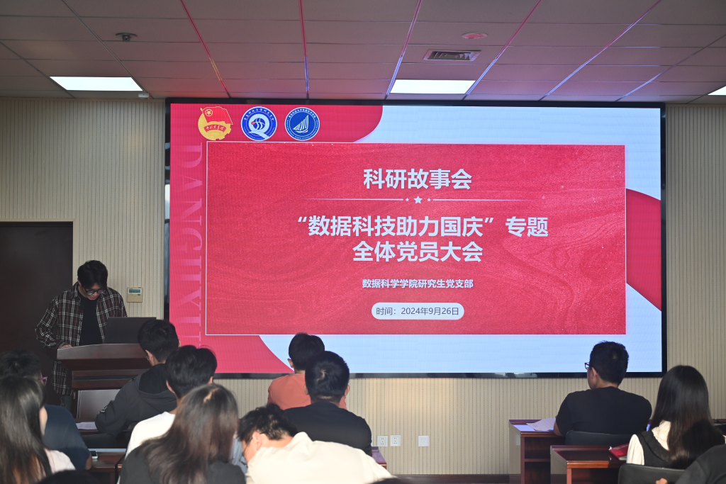 澳门十大信誉好的网站研究生党支部于2024年9月26日召开支部党员大会,以科研故事会的形式进行“数据科技助力国庆”专题全体党员大会。