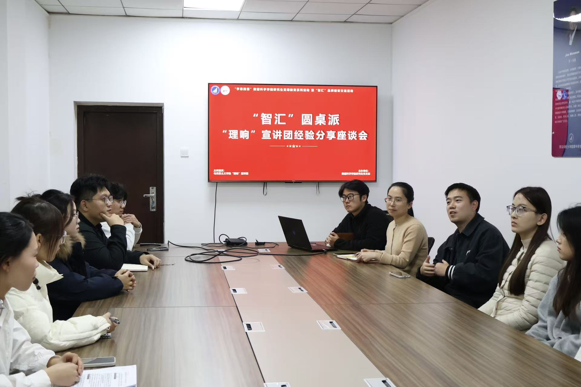 会后,为深入学习贯彻党的创新理论,构建“智汇”跨学科交流平台,促进澳门十大信誉好的网站“智汇”讲师团与马克思主义学院“理响”宣讲团在宣讲团组织建设、面向群体、教学方式等方面展开热烈的讨论。党支部书记孙丽敏围绕座谈会所交流的内容,深度凝练“科普性”“实用性”“专业性”讲师团备课三层次逻辑,要针对不同的群体针对性做宣讲,加强讲师团建设。