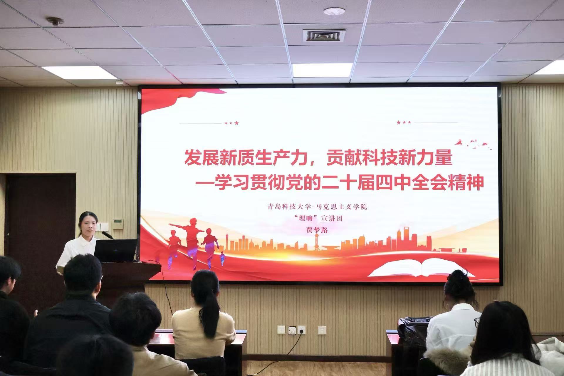 随后,全体党员在图书馆A4008会议室听取了“理响”宣讲团关于学习贯彻党的二十届四中全会精神系列讲座,宣讲团成员围绕全会的核心要义、丰富内涵以及在新时代新征程中的重大意义,结合数据科学、人工智能等前沿学科领域的发展趋势,系统解读了全会关于科技创新、人才培养等方面的部署要求,引导青年党员将个人理想融入国家发展大局,在学科建设、科研创新、社会服务中践行初心使命。