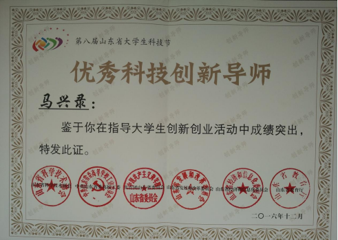 23.2016年山东省大学生科技节“优秀科技创新导师”