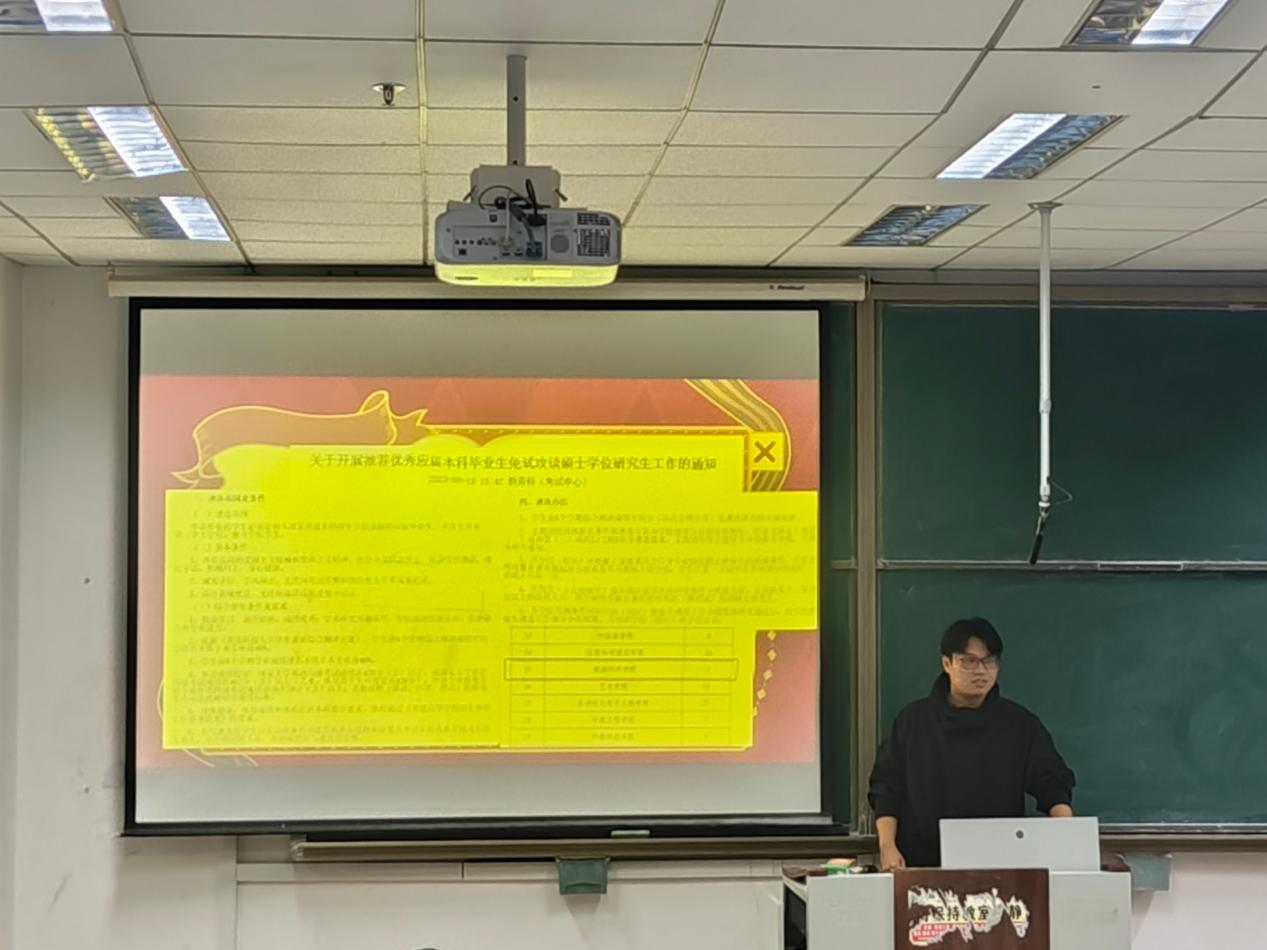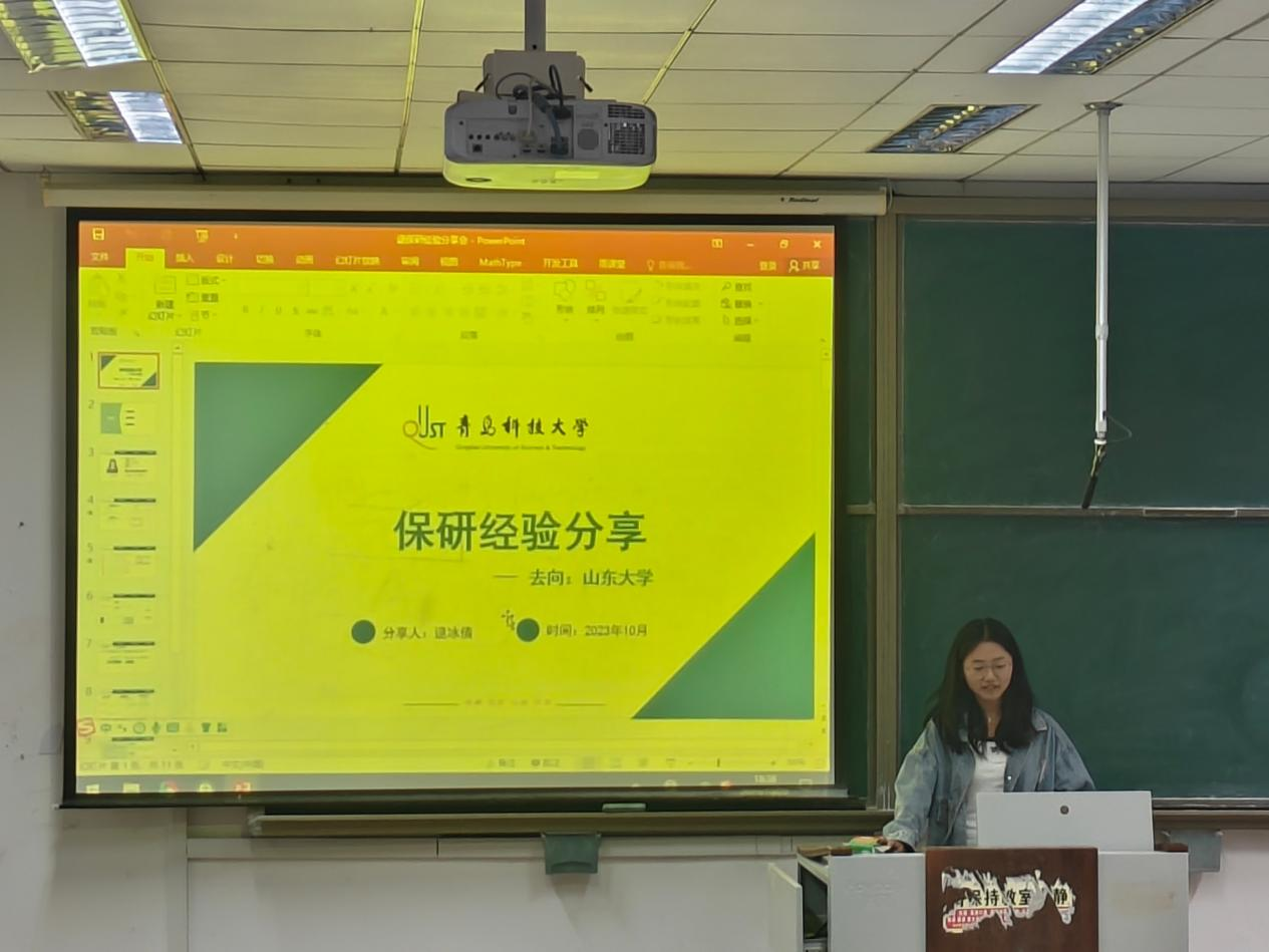 10月20日,澳门十大信誉好的网站在明德楼230教室举办“权益与你,‘研’路同行”保研经验分享会。2020级优秀学生代表樊怡麟、刘毅、逯冰倩、宫传政进行经验分享,数科科学学院170余名学生参加分享会。
