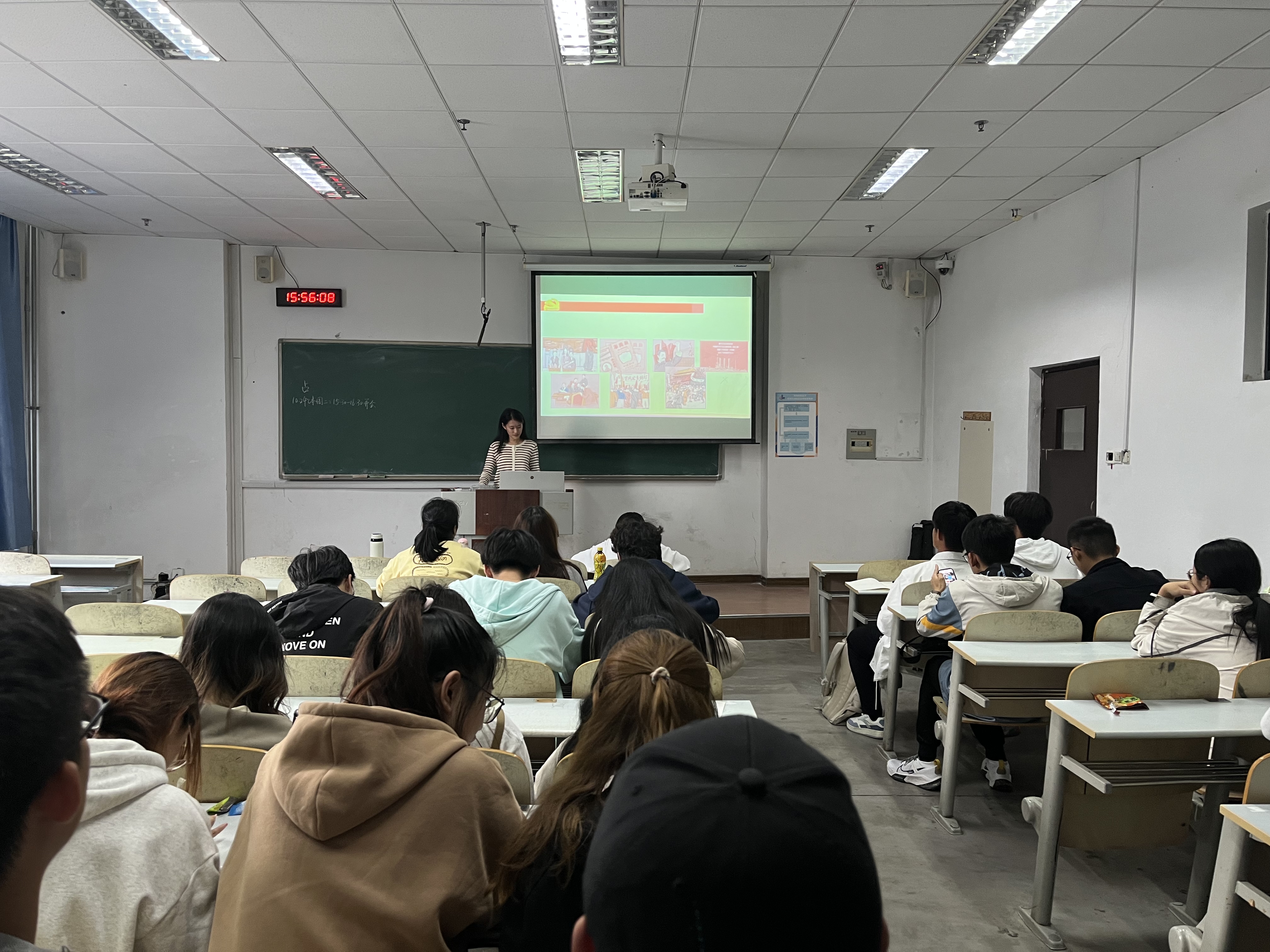 本次团课分为三个部分,房超文向同学们介绍了共青团的基础知识、共青团的历史发展阶段以及如何成为一名优秀的共青团员。第一部分,把握理论逻辑、不断提高政治判断力。首先,房超文为同学们介绍了“入团三大性”、“三会两制一课”、共青团的组织性质和基本任务、团费的用途以及共产党、共青团和少先队的关系。随后,向大家详细讲解了团员证、团徽及团旗上每一个元素的象征意义。最后,她邀请八位同学,两两一组进行“团史知识你说我猜”游戏,进一步加深了大家对团史知识的学习。第二部分,明晰历史逻辑、不断提高政治领悟力,带领同学们回顾了共青团由萌芽到成熟的四个发展历程,通过学习,同学们对共青团的成长历程有了更加清晰的认识。第三部分,坚持实践逻辑、不断提高政治执行力。房超文号召同学们要做一个有理想、敢担当、不保守、肯付出的优秀共青团员。“有理想”要求同学们把理想和现实有机结合,“敢担当”就要勇于挑起自身的责任,“不保守”是要跟紧时代的步伐,不断进步,勇于创新,“肯付出”就是要继承先辈们的奉献精神,并将其发扬光大。