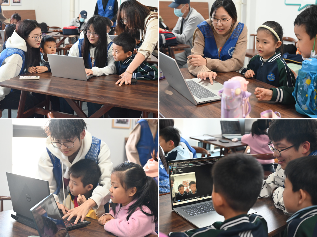 紧接着,志愿者们寓教于乐,寓学于趣,以充满童趣、浅显易懂的语言向孩子们讲解编程知识,耐心回答小朋友们在学习过程中产生的疑问。在志愿者们授课期间,小朋友们积极回答问题,认真听讲,高度配合志愿者的教学工作。志愿者们知识讲解结束后,让小朋友们自己动手操作,他们相互合作,发挥天马行空的想象力创作出了各种各样有趣的编程作品。