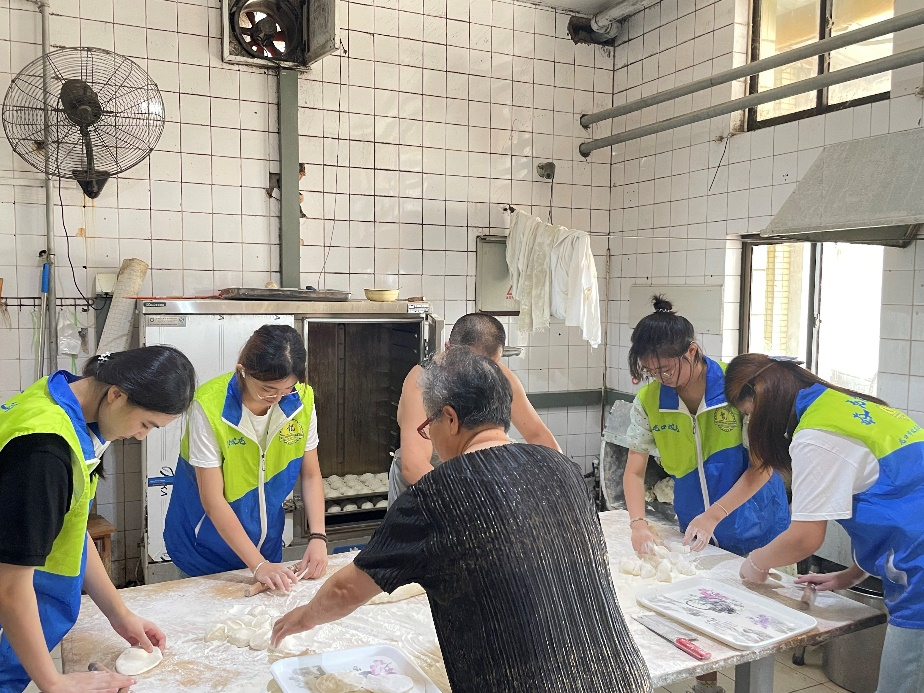 另一边,厨房内也是一片温馨的景象。学生们围在一起,跟着敬老院的厨师学习包包子。当热气腾腾的包子出锅时,不仅香气四溢,更温暖了在场每一个人的心。老人们品尝着学生们亲手制作的包子,脸上洋溢着幸福的笑容,纷纷称赞味道好极了,这份来自年轻人的关爱让他们感受到了家的温暖。