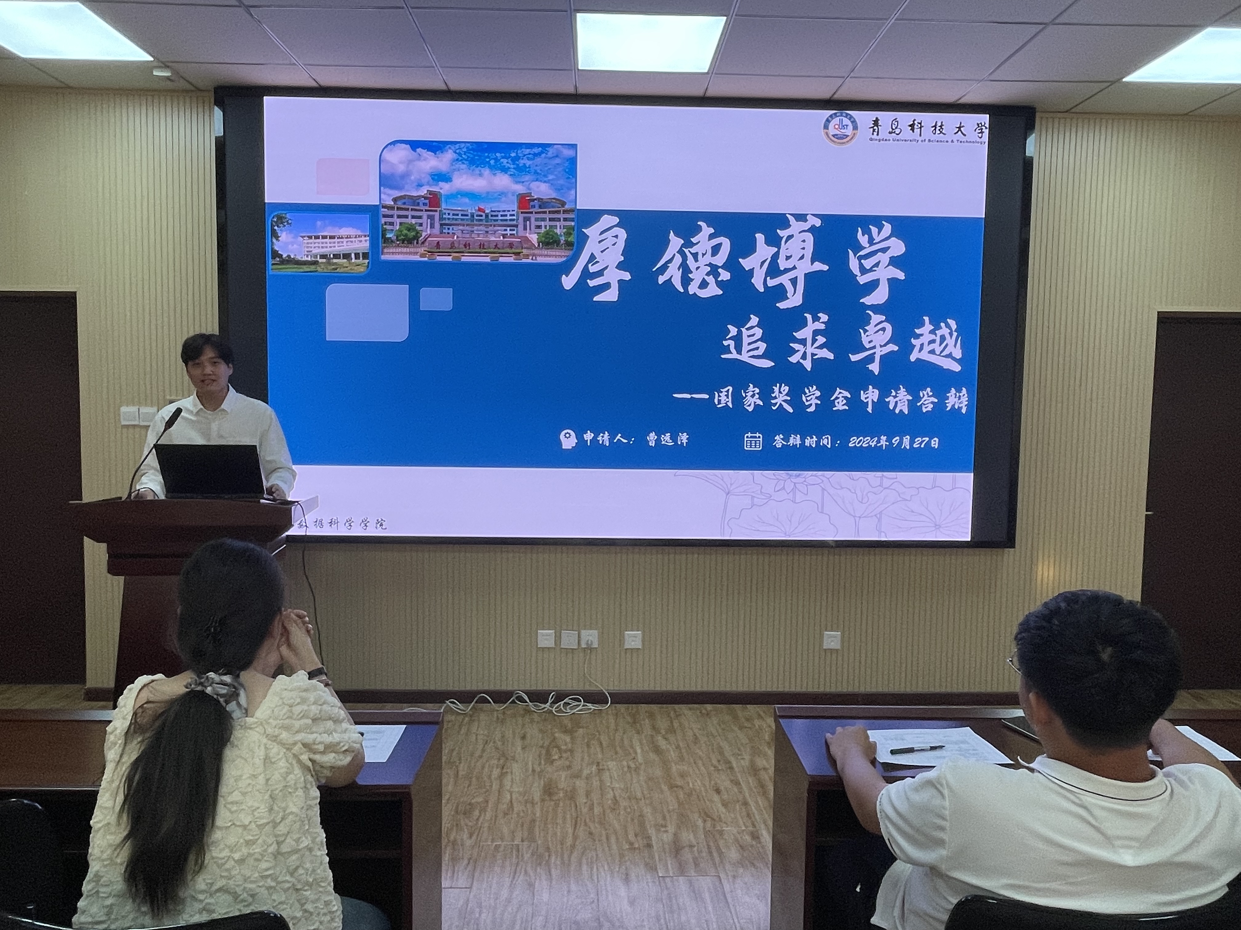 在紧张而有序的答辩阶段,五位候选人轮流登台,他们通过PPT展示,围绕个人特色与优势,详尽阐述了在思想觉悟、学术探索、社会实践以及志愿服务等多个维度上的成长轨迹与丰硕成果。从思想的深度到学术的广度,从实践的磨砺到奉献的热情,每位同学都以其独特的视角和生动的案例,全面而深刻地展现了澳门十大信誉好的网站优秀学子的卓越风采与综合素质。