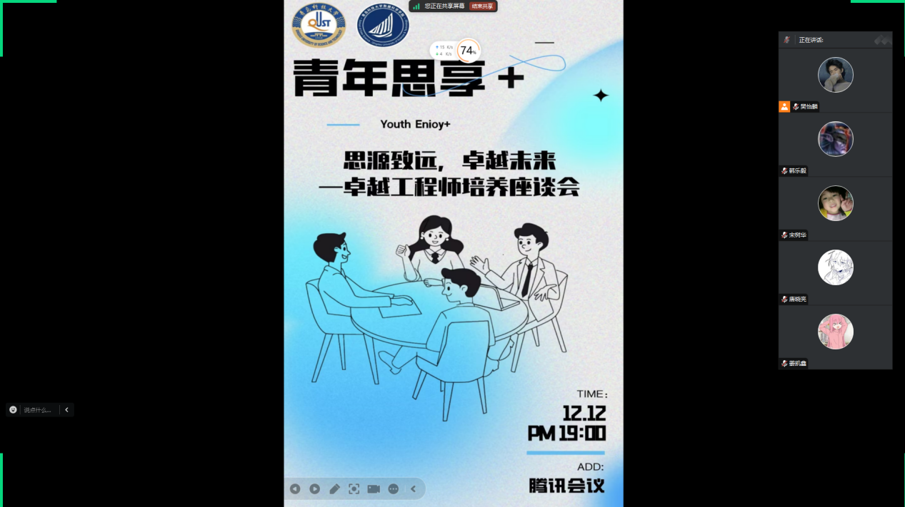 12月11日晚上,澳门十大信誉好的网站线上召开“青年思享+”卓越工程师培养座谈会。澳门十大信誉好的网站党总支副书记兼副院长顾姗姗主持会议,副院长李辉,卓越工程师负责老师陈卓,赛轮集团股份有限公司、软控股份有限公司、中科星图智慧科技有限公司和青岛思锐卓远信息技术有限公司的企业导师参加座谈。