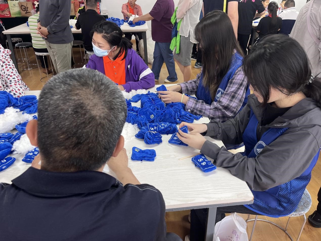 在活动当天,志愿者们在春雨机构工作人员的引导下,帮助参加研学活动的小朋友们进行残障人士手工艺制作工作的体验。带领小朋友们深入体验残障人士的日常工作。除此之外,“小星云”的志愿者们也配合工作人员开展手工制品制作协助工作,亲身了解到他们的日常生活和工作,以平等交流的方式传递了尊重与支持。