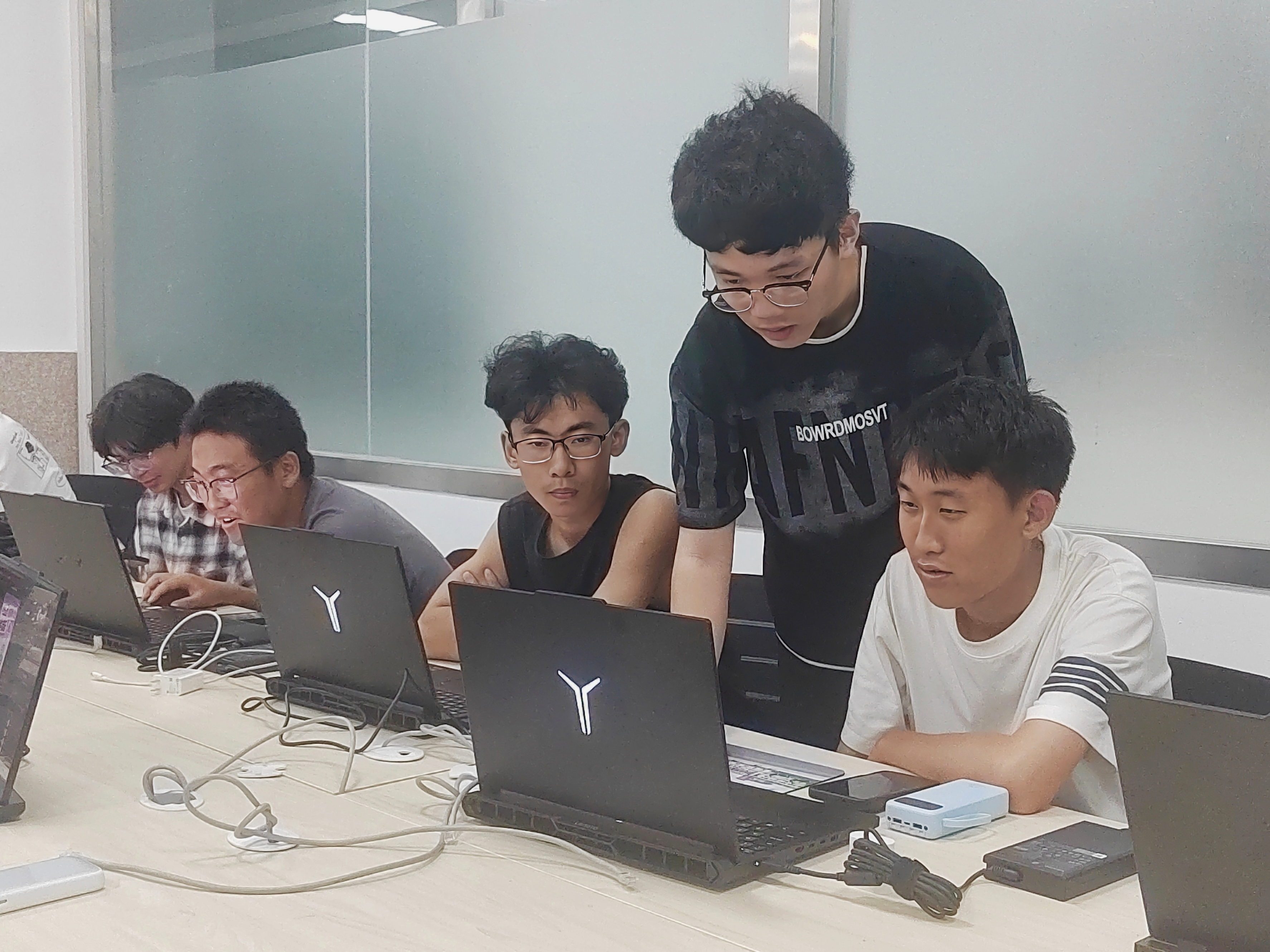 进入实操环节,同学们运用Photoshop处理培训提供的影视样片素材,分组展开 Photoshop 实践演练。负责人在教室中巡回指导,针对大家在图层蒙版使用、色彩平衡调节中遇到的问题,进行演示与纠正。