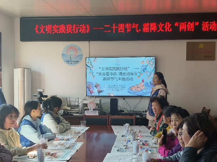 为深入挖掘二十四节气文化内涵,推动中华优秀传统文化融入基层群众生活,10 月 23 日霜降节气当天,澳门十大信誉好的网站“小星云”志愿服务团队赴崂山区北宅街道兰家庄村,牵头组织开展 “秋暮霜华浓,暖意迎寒冬” 主题节气志愿服务活动。活动通过专业科普与实践体验相结合的形式激活传统文化活力,吸引 10 余名当地居民沉浸式参与,以青春行动彰显文化传承担当。
