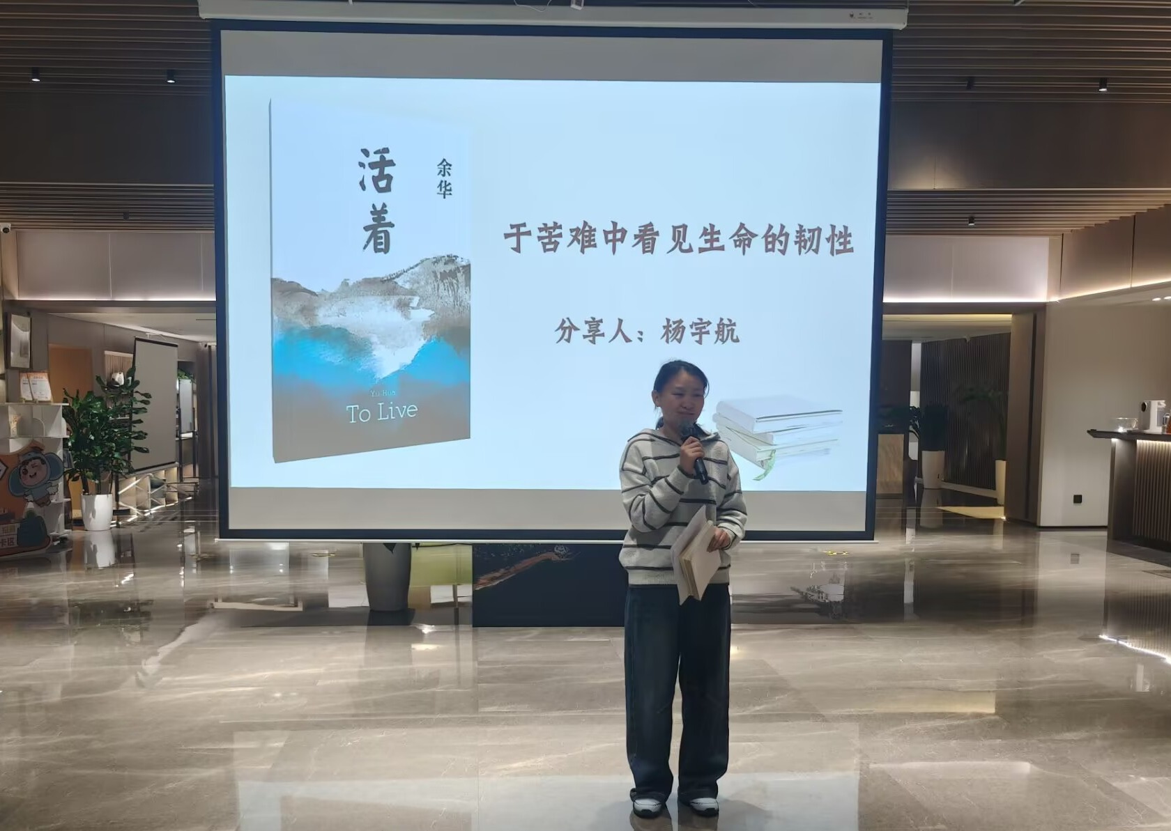 人工智能253班杨宇航以“于苦难中看见生命的韧性”为题,分享《活着》,从福贵一生苦难切入,表达了生命即使历经磨难,依然拥有顽强的力量的观点。