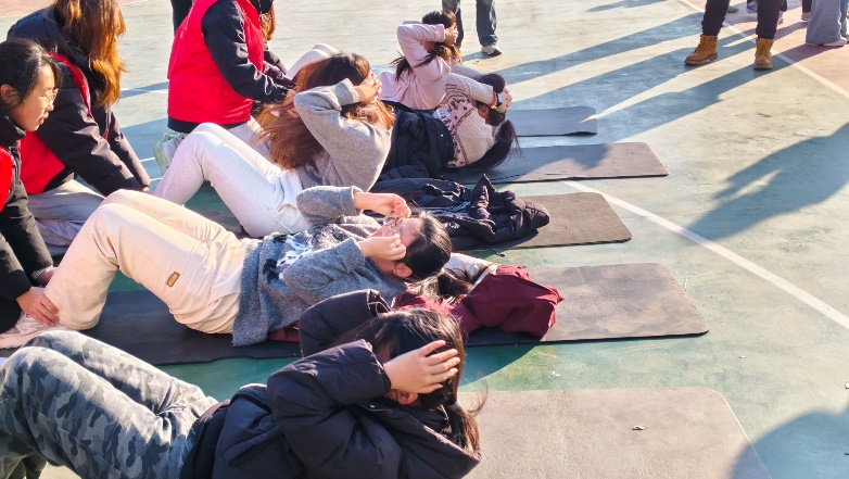 比赛现场,队员们展现出良好的竞技状态与体育素养。男子组累计完成引体向上94个,女子组累计完成仰卧起坐385个,以稳定发挥完成全部竞赛环节,展现出顽强拼搏的体育精神。