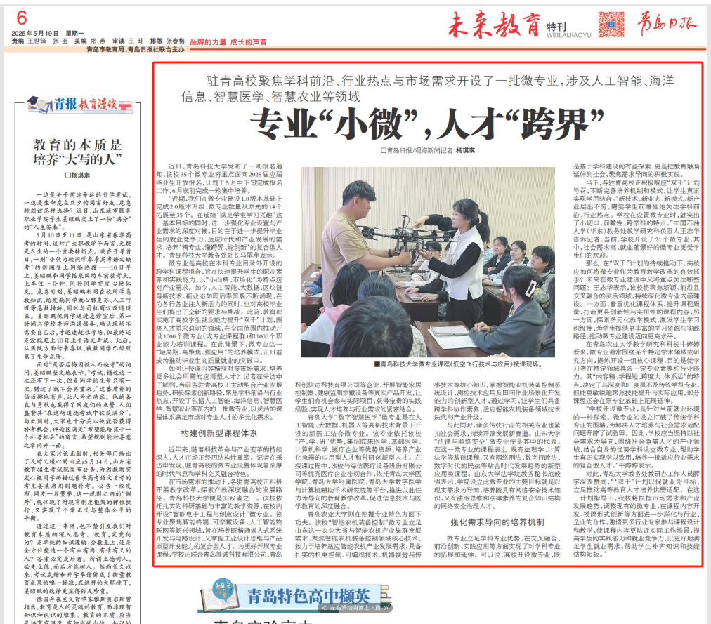 近日,学院微专业课程《低空飞行技术与应用》获青岛日报刊登报道。