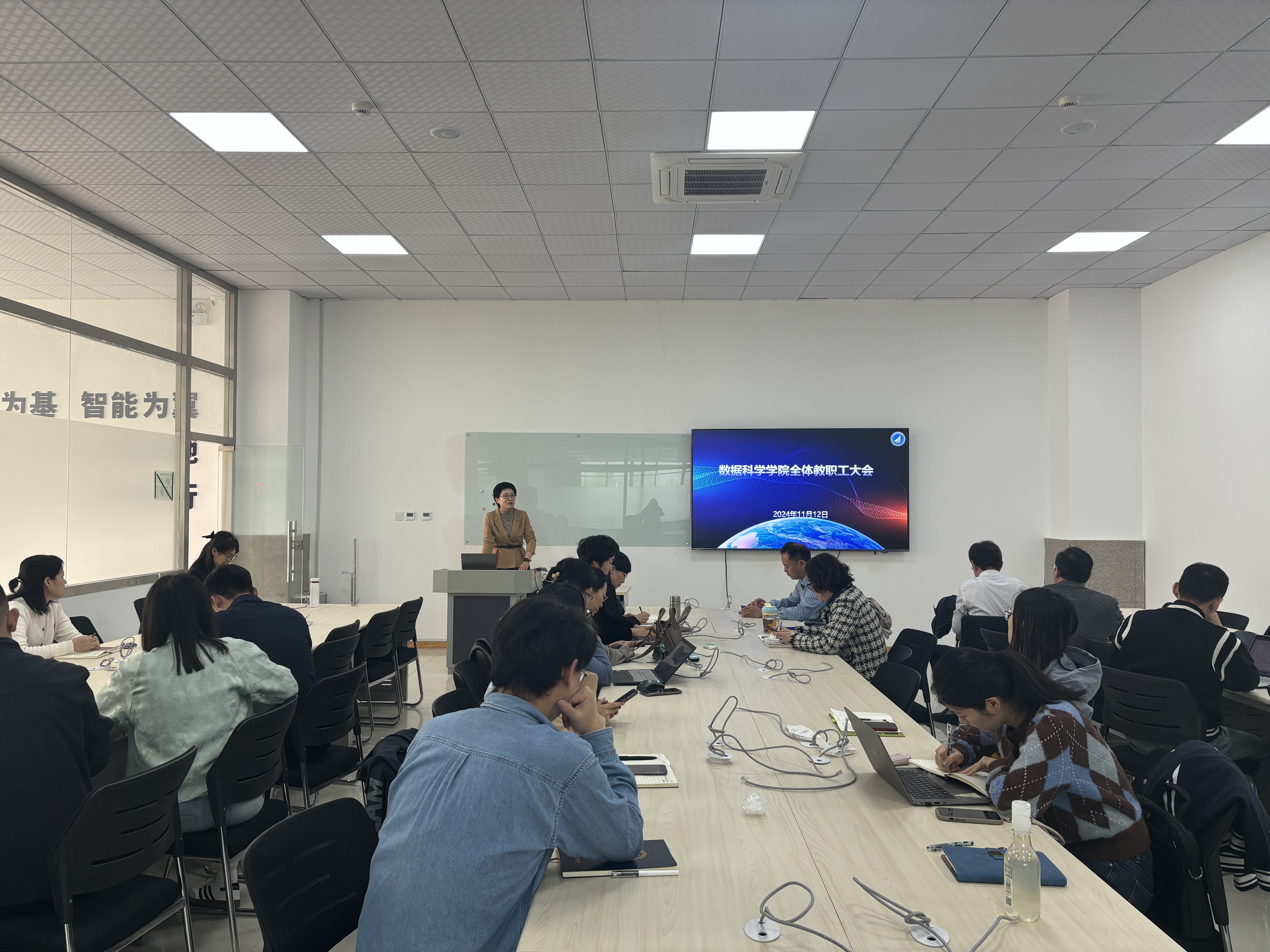 11月12日,澳门十大信誉好的网站于数智教学实训中心召开全体教职工大会。学院党总支书记张玉主持会议。