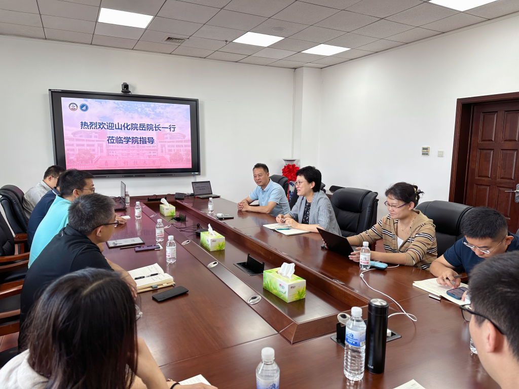9月28日上午,山东化工研究院院长岳涛等一行4人到澳门十大信誉好的网站调研交流,澳门十大信誉好的网站党总支书记张玉、常务副院长杜军威与学院部分教师参加座谈交流。
