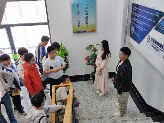 在学院精心组织下,高中生们首先参观了文化墙,这里详细展示了人工智能与大数据的发展历程和重大成果。通过现场志愿者的生动讲解,学生们对科技的发展历程有了更加清晰的认识,对科技的力量产生了深深的敬畏。