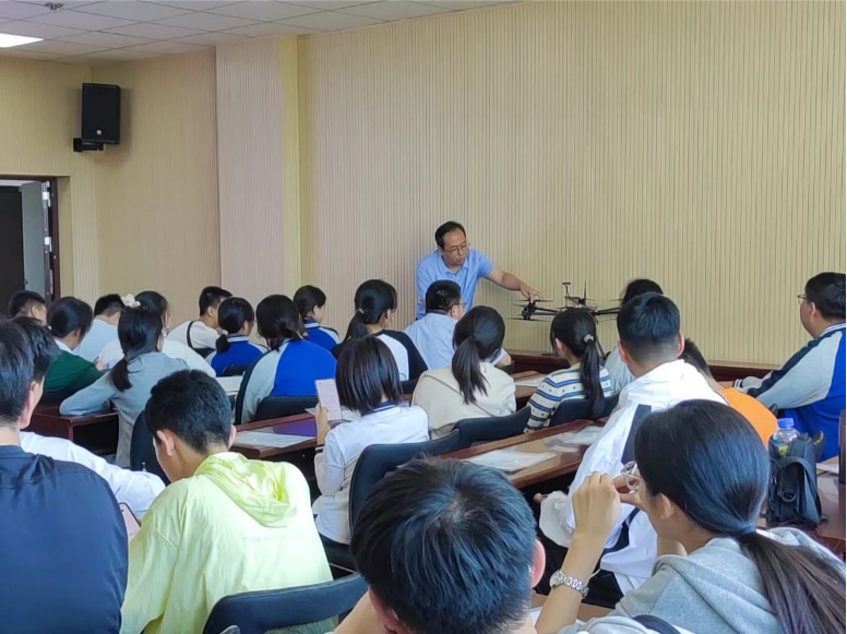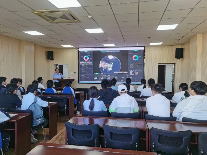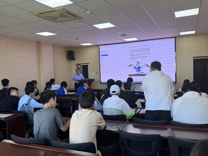 在讲座和互动环节,云计算实验中心主任王华东老师以深入浅出的方式,向学生们介绍了卫星服务平台的功能与应用,并通过学院无人机飞行实时监测系统,向学生们展示了学院在低空飞行领域的最新科研成果。