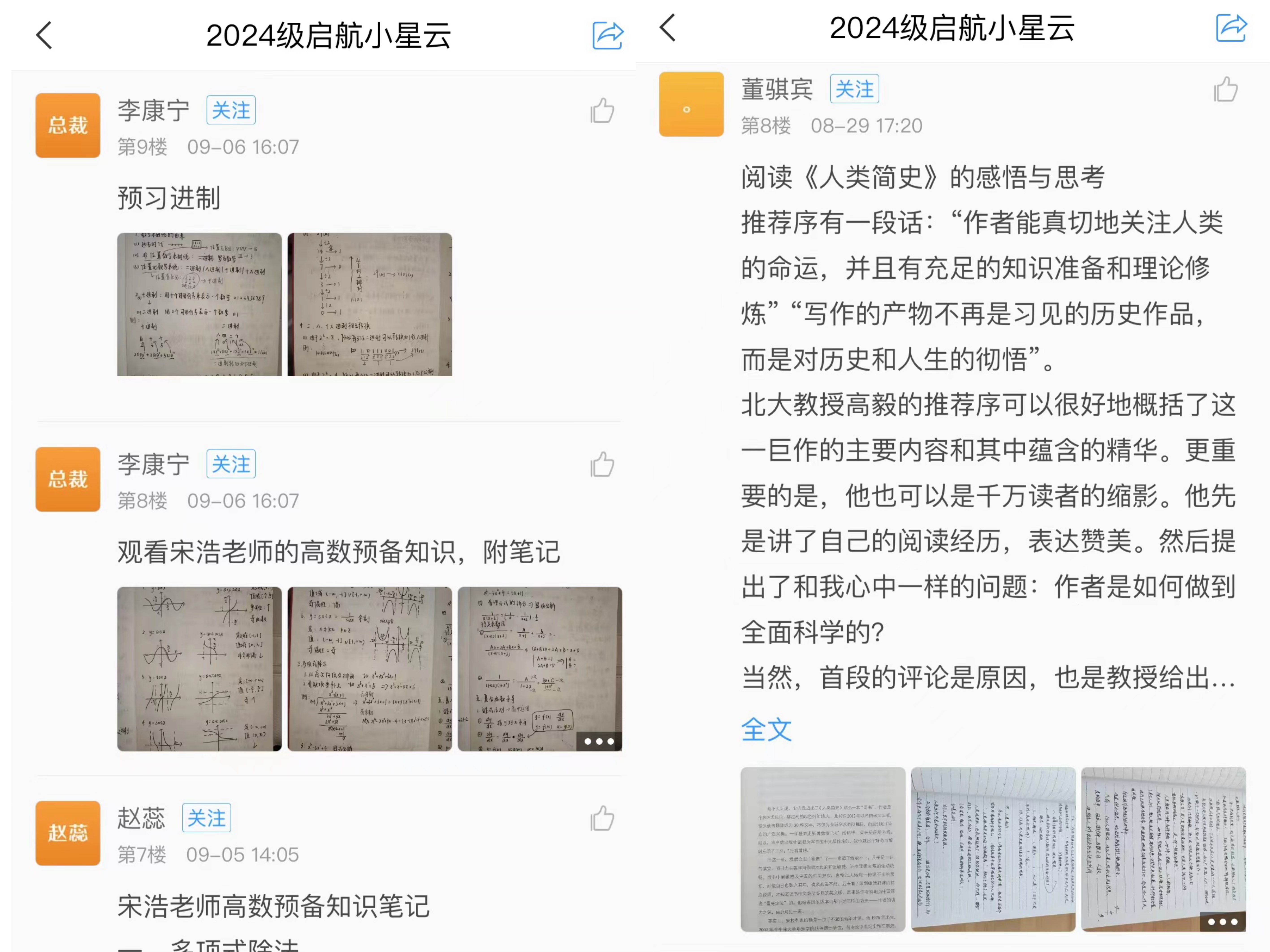学院针对大学生假期时间充裕,对高校充满期待的特点,先行一步,线上组织各类迎新活动,确保每一位新生都能在踏入校园的第一步就感受到家的温暖和学术的召唤。早介入,抢抓育人先机。学院利用学习通APP,开展“‘悦’读沐初心,书香致未来”新生读书活动和“新知共逐梦,同侪启航程”新课预习活动等活动,“云端”分享读书心得、学习经验,88名新生参与活动,实现“未入校、先入学”,助力新生适应大学生活,及时转换角色,提前做好规划,树立正确的学习目标。早见面,共绘成长蓝图。学院召开“云端精英汇,携手启新篇”线上见面会,邀请专业负责人、新生辅导员与新生云端见面,做好有关思想引导、专业引航、生涯规划等工作,指导新生入学入校全流程,提前增进对校园环境的了解。早谋划,家校协作共育。迎新当天,学院第一时间召开“家校相约 共话成长”2024级新生家长沙龙,学生、家长、教师就学生发展的安全健康、成长成才等关键同题共答,画好学生发展最大同心圆。