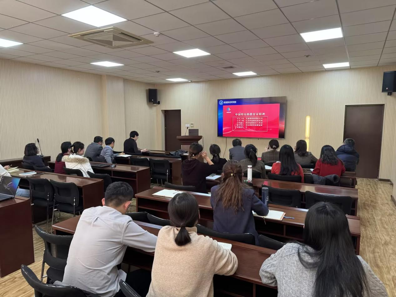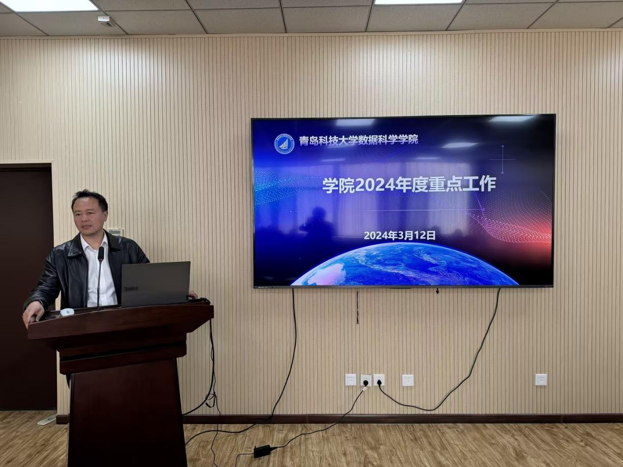 常务副院长杜军威全面传达了学校2024年工作会议暨中层干部培训班相关培训内容,带领全院教职工深入学习了《2024年党政工作要点》。杜军威对学院2024年的工作思路进行了梳理并部署了重点工作。他希望全体教职工要紧密围绕学院新一年的基础性和高质量目标任务,按照学校各项工作的部署,坚定信心,拼搏进取,勇做贡献,为学院2024年度的教学、科研、学生发展等目标任务的顺利完成而团结奋斗。