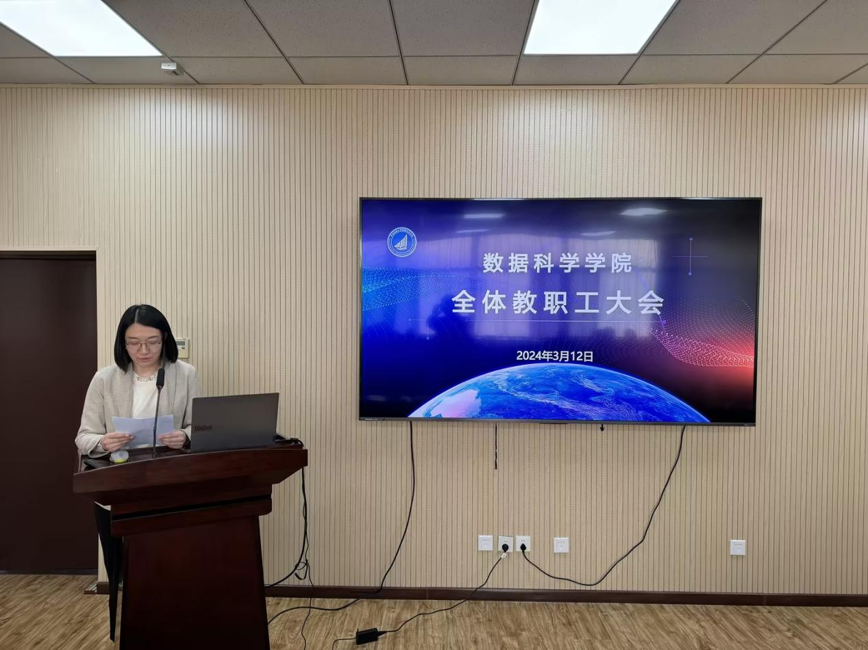 3月12日,澳门十大信誉好的网站在图书馆A区4008召开全体教职工大会。学院党总支书记张玉主持会议。