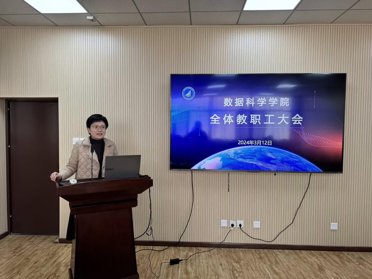 张玉结合学校2024年工作会议暨中层干部培训班有关精神和要求,对今年学院的重点工作进行了相关补充说明。她希望,全院教职工要认真学习领会本次会议精神和工作要求,认清当前学科专业发展态势,心存危机意识和改革创新意识,凝心聚力,埋头苦干,开拓进取、笃行不怠,助力推动学院各项事业高质量发展。
