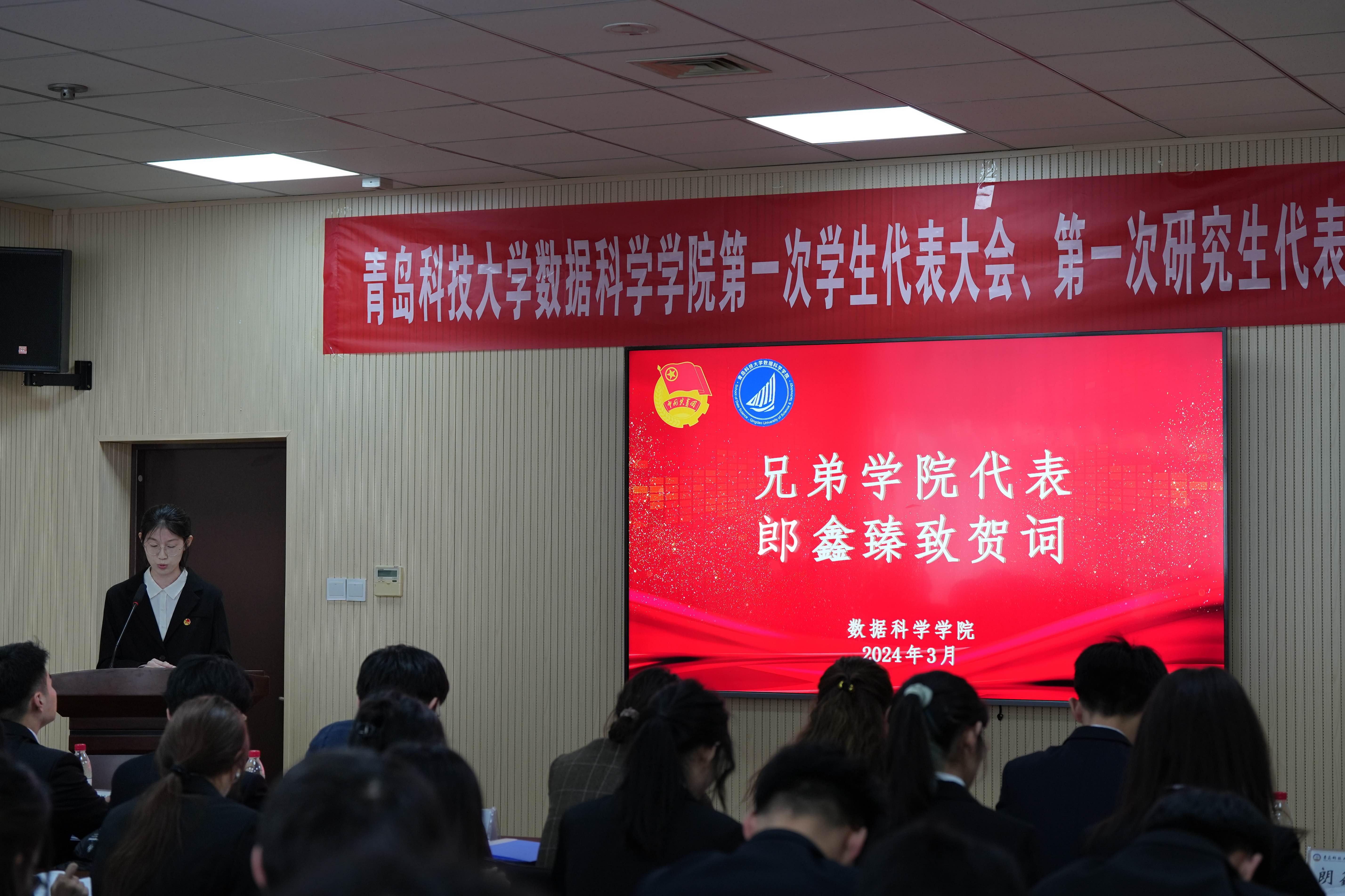 接着大会工作人员宣读了各兄弟学院发来的贺电、贺信。郎鑫臻代表兄弟学院、刘毅代表校学生会分别致贺词,预祝澳门十大信誉好的网站第一次学生代表大会、第一次研究生代表大会顺利召开,圆满成功。