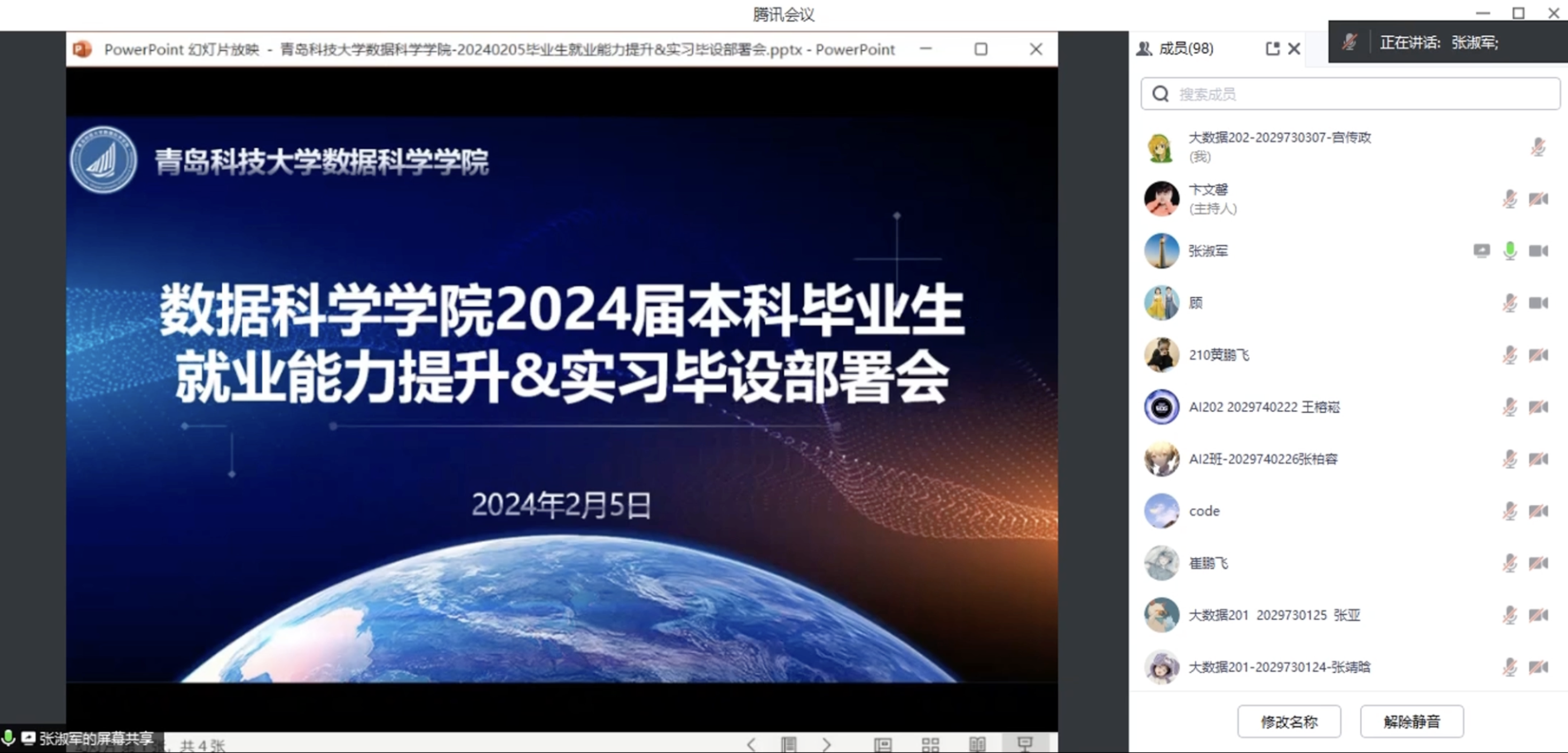 2月5日下午,澳门十大信誉好的网站通过腾讯会议召开2024届本科毕业就业能力提升培训暨实习毕设部署会,学院专职组织员官杰、院长助理张淑军出席会议并部署相关工作,学工办主任兼团委书记顾姗姗主持会议。澳门十大信誉好的网站2024届全体本科毕业生参会。