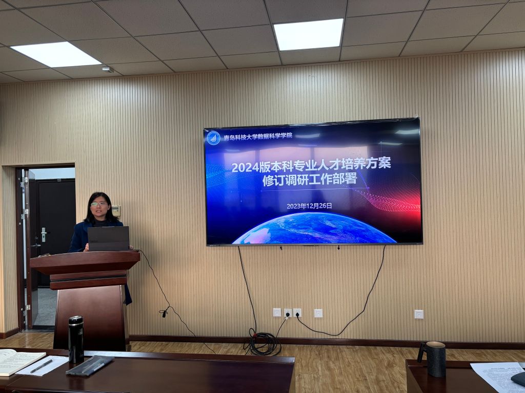 院长助理张淑军部署2024版本科专业人才培养方案修订调研工作、2024届本科毕业实习、毕业设计工作。她指出,各位老师要合理分工,群策群力,充分广泛开展调研,力求保证2024版本科人才培养方案的科学性、先进性、合理性,并为2024年春季学期毕业设计工作的正常进行奠定良好的基础。