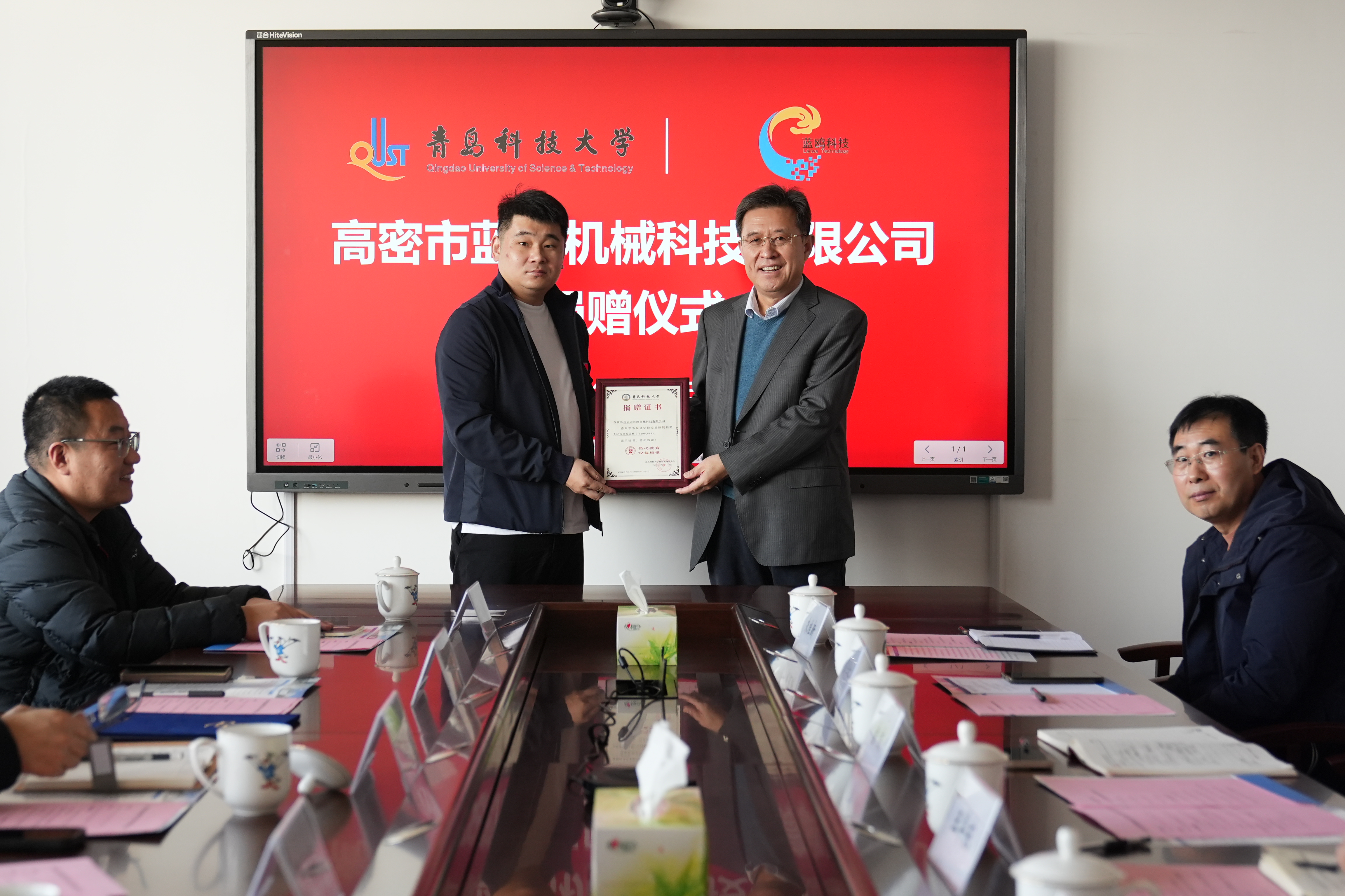 11月30日上午,高密市蓝鸥机械科技有限公司捐赠仪式在图书馆A区5004会议室举行。高密市蓝鸥机械科技有限公司董事长于洪亮、总经理李彪、特别助理于海洋、技术总监于泳水,学校澳门十大信誉好的网站党总支书记官杰、院长助理戴学仁出席仪式。