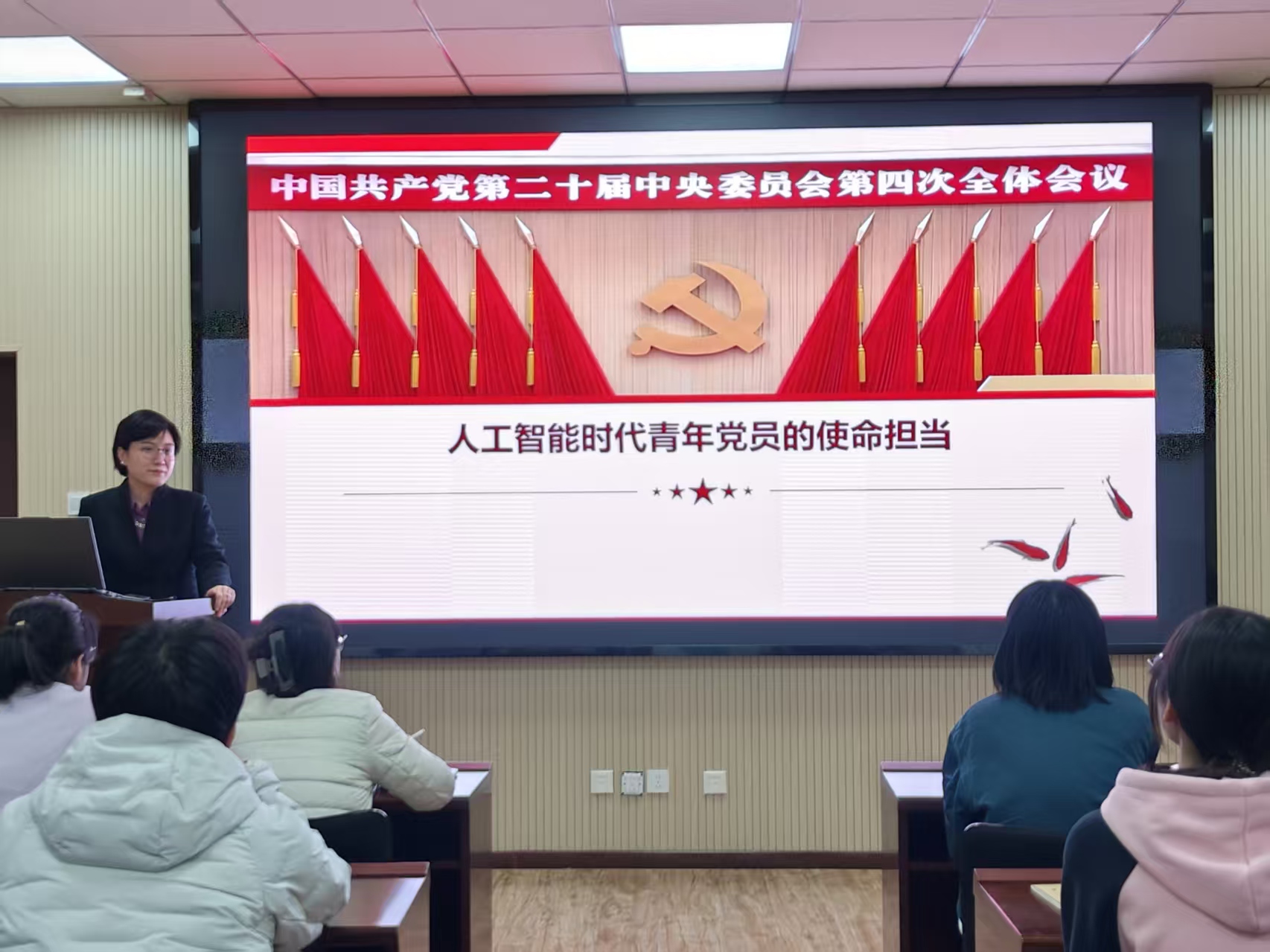 12月2日,澳门十大信誉好的网站党委书记张玉为学院学生讲授《人工智能时代青年党员的使命担当》思政课,深入解读党的二十届四中全会精神,引导同学们在新时代中明确责任,发挥积极作用。