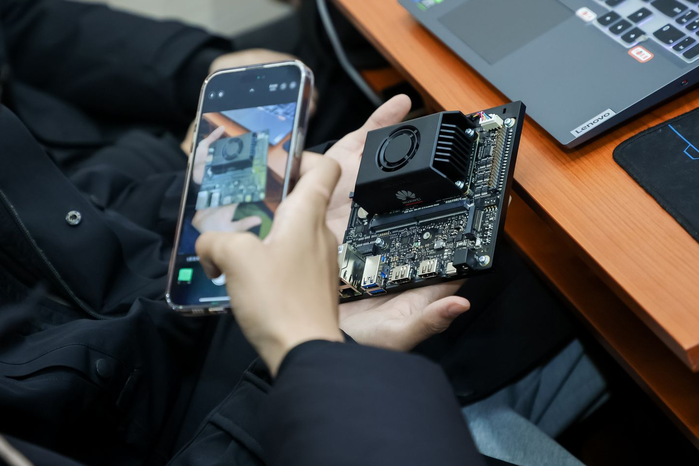 接下来,陈秀红向同学们详细介绍了昇腾大脑,并进行了趣味开发的演示,展示了具有极致算力的Atlas 200I DK A2开发板,吸引了同学们的关注。