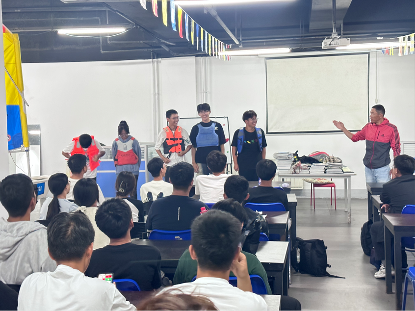9月23日晚在大学生活动中心,金永泉为参加本次素质教育课程的学生进行帆船安全知识的讲解。金永泉通过生动的案例,向学员们阐述了帆船运动中可能遇到的各种风险以及应对措施,确保每位学员都能在保障安全的前提下享受帆船带来的乐趣。随后,学员们在金永泉的指导下进行了模拟演练,从理论到实践,逐步掌握了帆船操作的基本要领。
