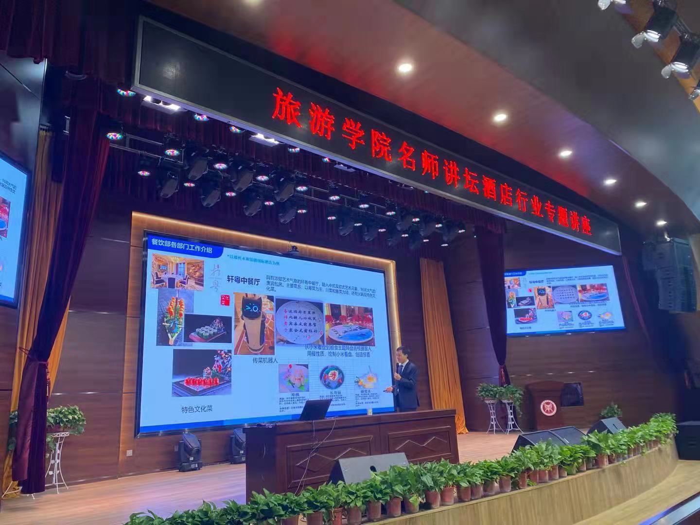 冯国伟经理首先为在座师生介绍了永和铂爵国际酒店的部门构成和餐饮部的组织架构,让师生们对于酒店有了了解。冯经理结合自身的学习和工作经历,真诚地分享了他在酒店行业的成长经验。他谈到在酒店基层工作时认识到英语口语及掌握外国客人用餐习惯的重要性;在中层管理中认识到企业文化在企业中的重要性。冯经理还从餐饮部各部门工作、餐饮部推广、餐饮VIP接待和食品安全管理四个方面详细地讲解了五星级酒店餐饮运行的模式。他提到,酒店客人隐私管理、全员营销理念和食品安全管理体系(FSMS),让在座的学生体会到了酒店管理专业知识的重要性。冯经理表虽然2020年新冠疫情对酒店业造成了较大的打击,但对酒店业的发展前景仍应抱有非常大的信心,其发展潜力是值得期待和相信的。冯经理结合多年从业经验,与同学们进一步分享酒店人应具有的坚持、学习、创新和态度。