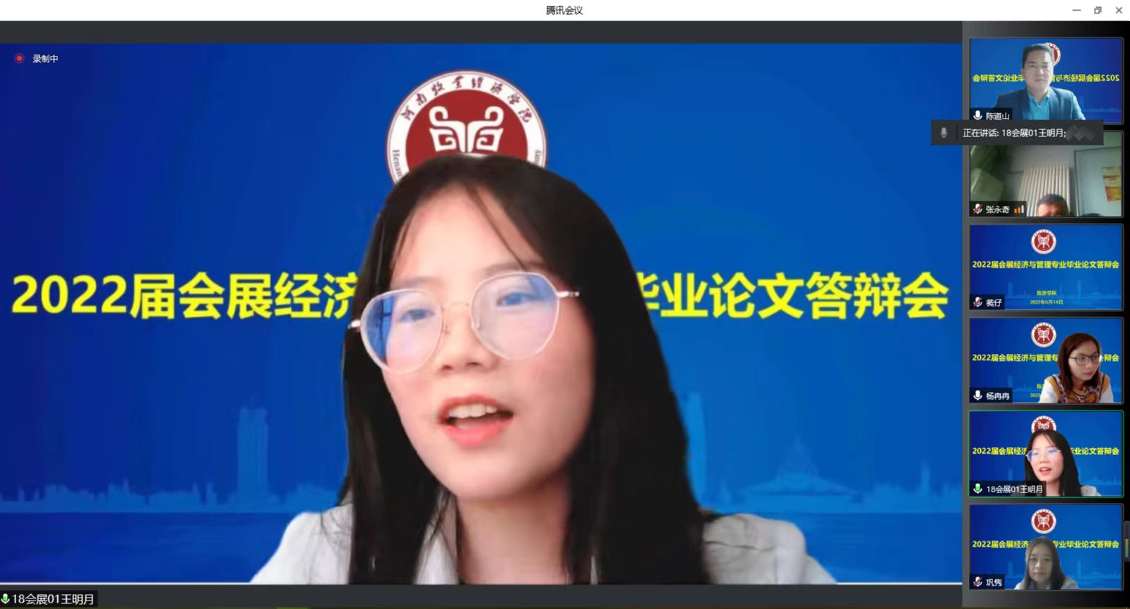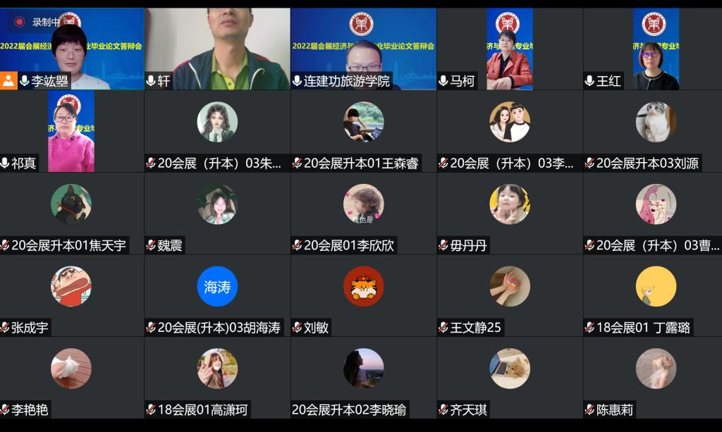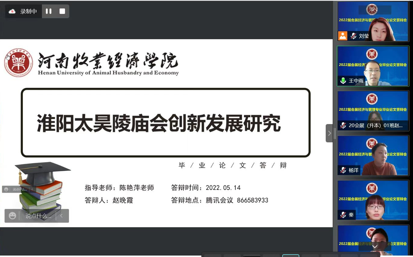 5月14日,beat365在线体育官网登录入口2022届会展经济与管理本科专业顺利完成214人毕业论文答辩工作。受疫情影响,经学院学术委员会研究,此次答辩师生全部通过腾讯会议采用线上方式进行,分为8个答辩组,院长王德静、副院长王中雨等48位教师参与全程答辩。答辩还吸引了2019级、2020级部分同学参与观摩。