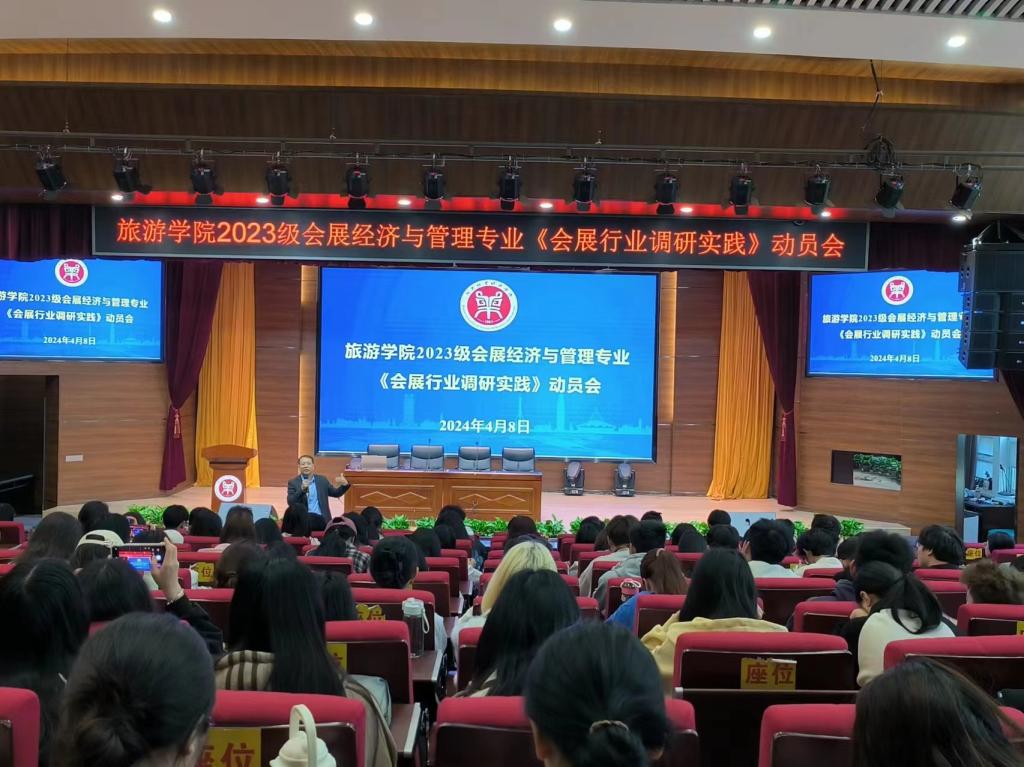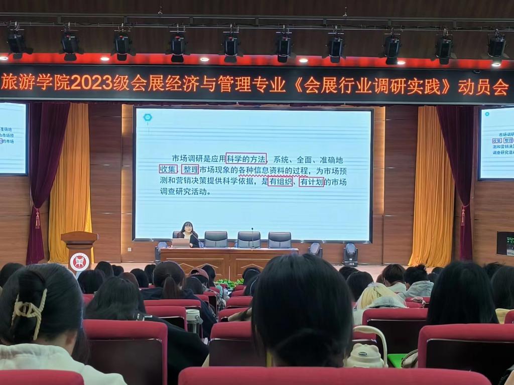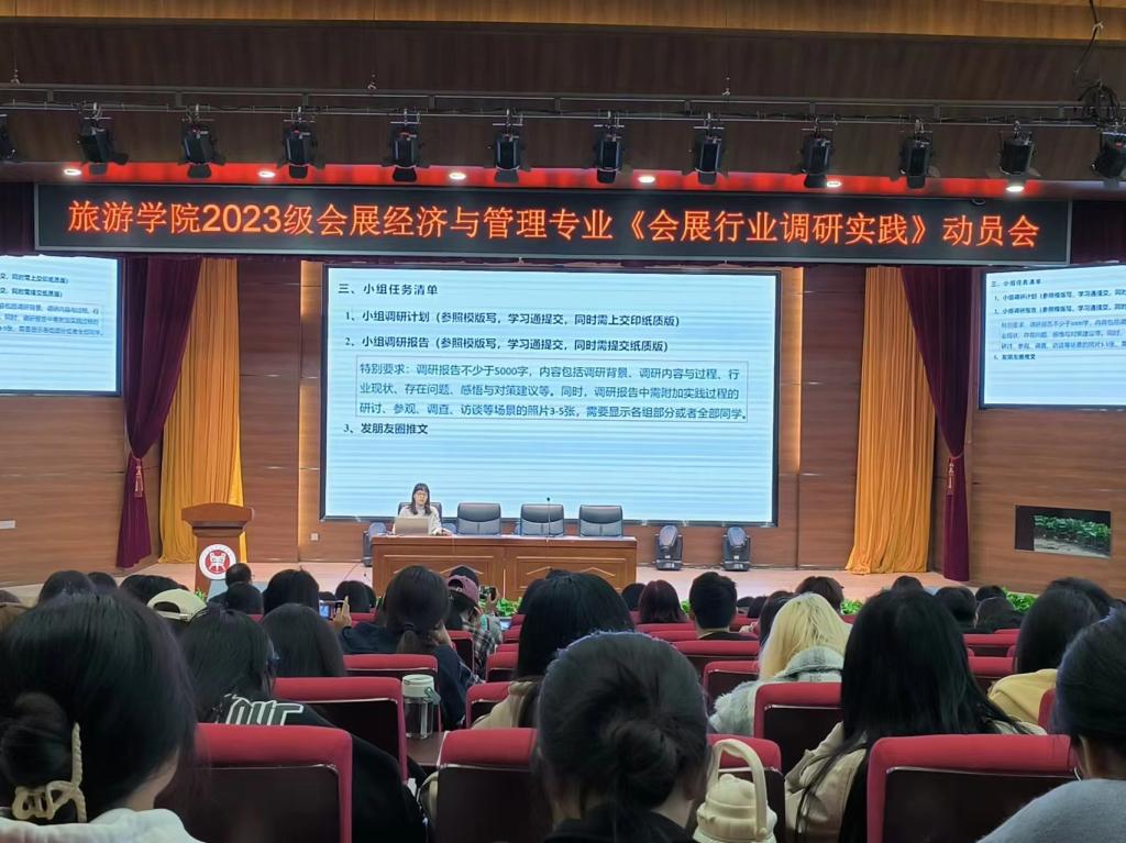 4月8日上午,beat365会展经济与管理专业省级一流实践课程《会展行业调研实践》项目在一号教学楼合100报告厅顺利启动,学院教学副院长王中雨、会展经济与管理教研室全体老师及2023级会展经济与管理专业群体学生130多人参加动员会。