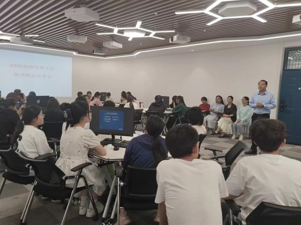 为了搭建一个让新生与优秀校友交流学习的平台,旅游管理教研室于4月18日下午在龙子湖校区C425智慧旅游实训室成功举办了旅游管理专业优秀校友分享会。此次活动旨在通过学长学姐传授宝贵经验,为23级旅游管理专业的同学们指明方向,激发他们的学习热情。此次活动受到了学院和旅游教研室的高度重视,王中雨副院长亲临现场,教研室全体老师参加了会议。
