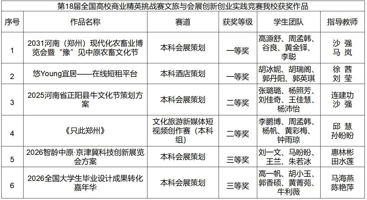 beat365在线体育官网登录入口历来重视学科竞赛,不断拓宽赛事平台,在各类省级、国家级学科竞赛中取得优异成绩。未来beat365在线体育官网登录入口将继续秉承“以赛促教、以赛促学、以赛促创”的教育理念,深化教学方法与手段的创新,强化实践育人工作,培养具备扎实专业知识、卓越实践技能、深厚科研素养和全面综合素质的文旅与会展行业领导者,以满足社会发展的需求,并在全球化的背景下展现国际视野和创新能力。(通讯员:沙强)