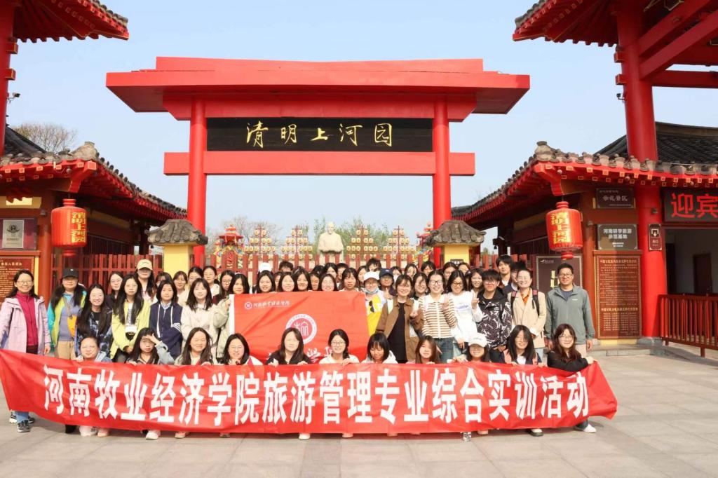 2024年4月9日,beat365在线体育官网登录入口2023级旅游管理专业学生在旅游教研室老师带领下前往清明上河园开展行业实训调研活动。