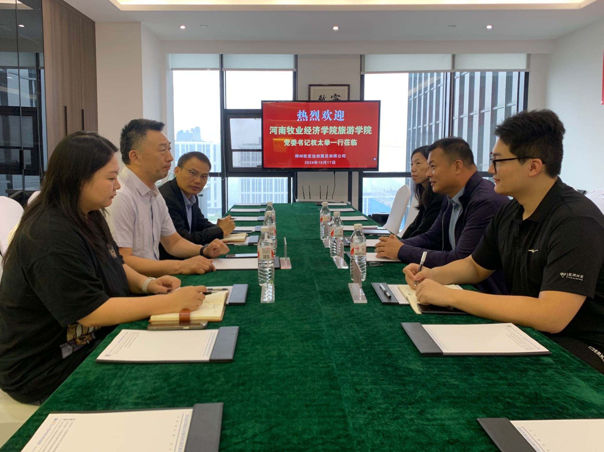 为深入贯彻落实教育部关于高校毕业生就业工作的决策部署,深化校企交流合作,拓宽毕业生就业渠道,按照学校深入推进访企拓岗促就业专项行动的要求,10月17日,beat365在线体育官网登录入口党委书记权太举一行3人走进郑州欧亚远创展览有限公司、郑州龙子湖中原学术交流中心、河南和光月色农文旅有限公司考察交流、访企拓岗。