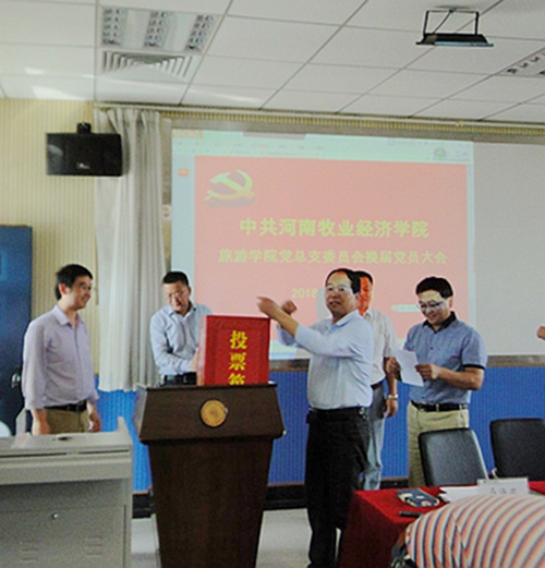 2018年5月10日下午,中共beat365在线体育官网登录入口beat365在线体育官网登录入口总支部委员会换届选举大会在二号教学楼C614旅游模拟实验室隆重举行。党总支应到正式党员41名,参会正式党员37人,2名九三学社教师应邀列席参会,符合党章规定,大会按程序顺利召开。会议由beat365在线体育官网登录入口院长徐新林同志主持。