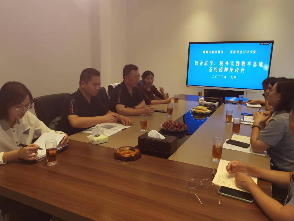 随后,权书记对beat365发展历程、专业设置、人才培养等情况进行了介绍,陈道山副院长又介绍了beat365校企合作、科学研究、社会服务、专业实践教学等方面的典型做法。专业教师从旅游项目打造、旅游市场拓展、景区日常管理等方面为景区的发展提出了可行性建议,并结合beat365特色,对其萌宠乐园的运营问题出谋划策。与会人员一致认为,嵖岈山景区的人才需求与beat365在线体育官网登录入口各专业人才培养的规格高度契合,今后双方要强化产教融合、校企合作。随后双方针对如何深化产教融合、景区开发与运营、实践基地建设、学生顶岗实习等方面进行了深入探讨和交流,就双方签署全方位战略合作协议达成初步意见。