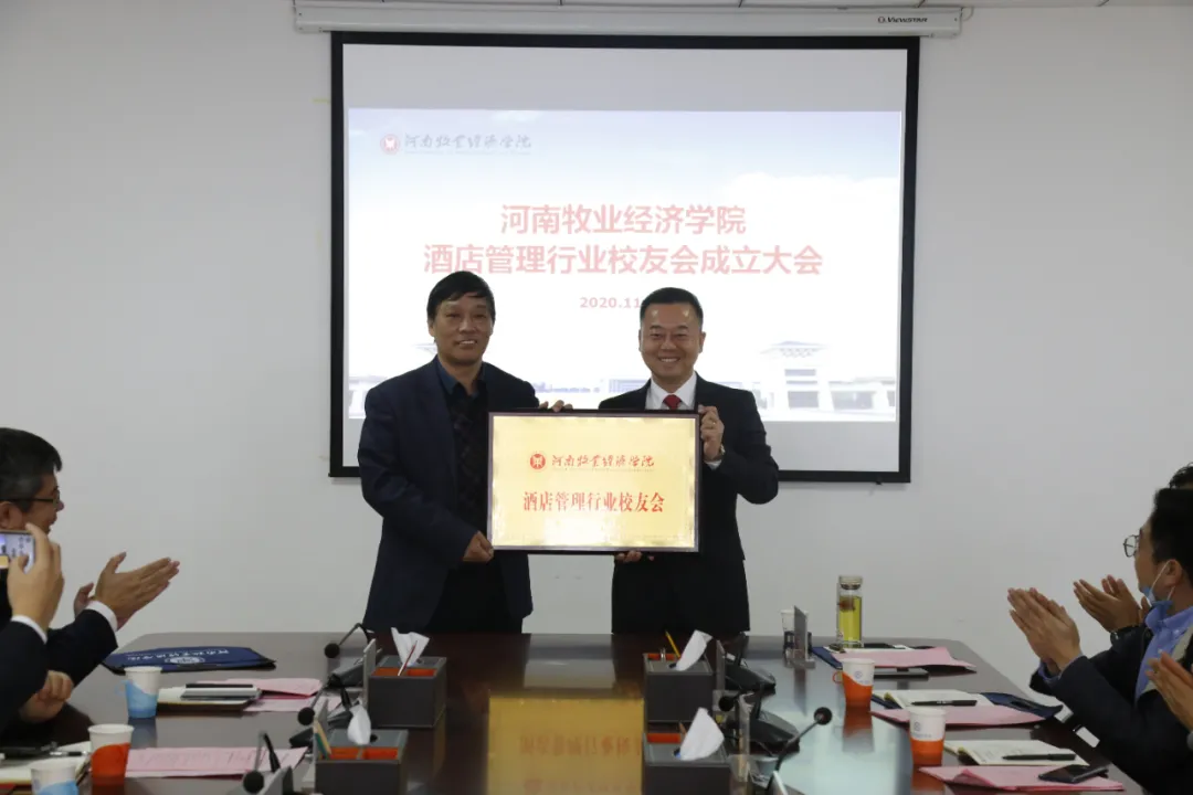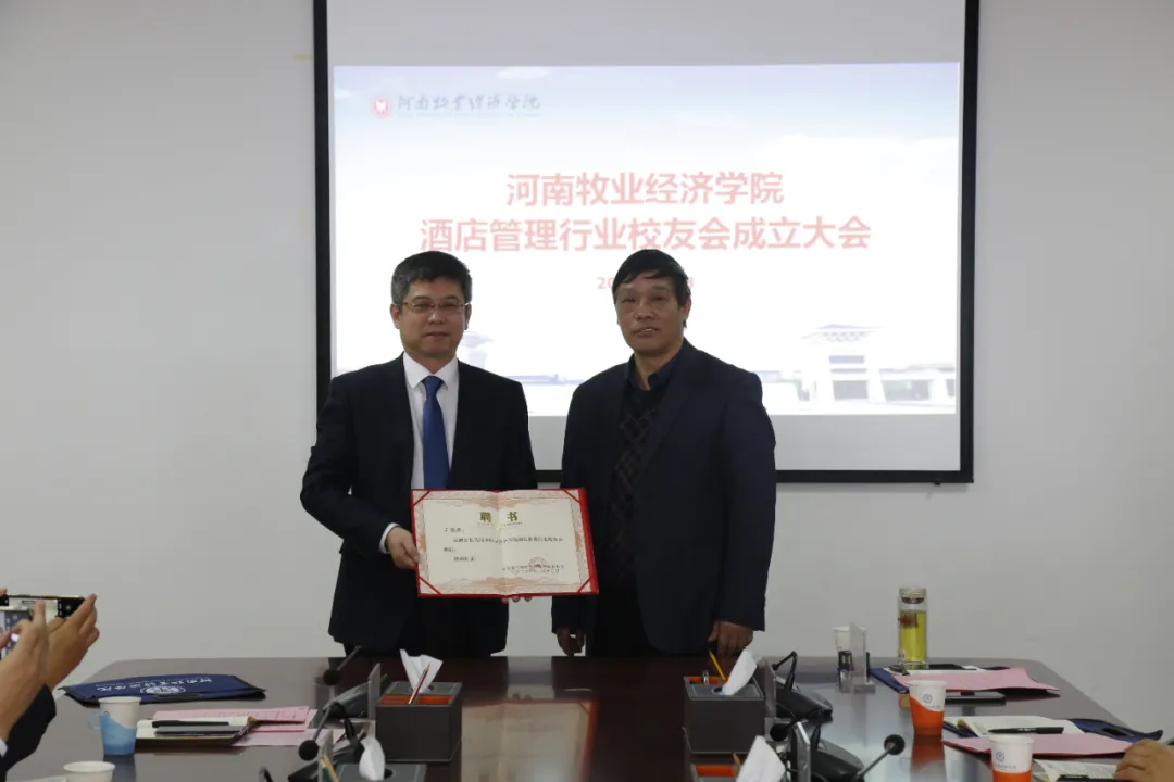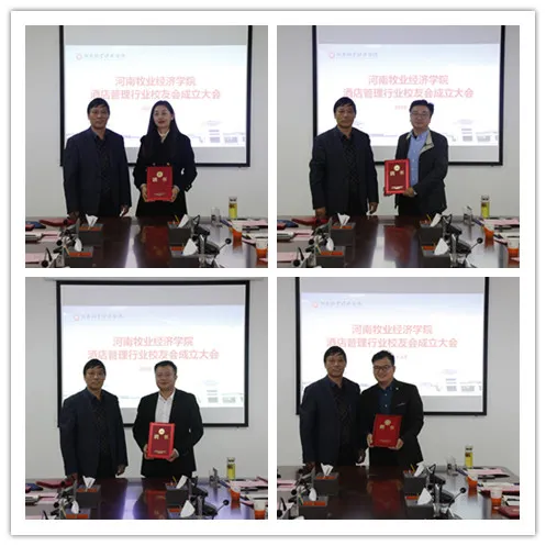 成立大会由beat365在线体育官网登录入口副校长杨宝进主持。郑州鹰城鑫地酒店总经理谢松涛代表校友会筹备组做了筹备工作报告。会议首先审议通过了《beat365在线体育官网登录入口酒店管理行业校友会章程(草案)》和《beat365在线体育官网登录入口酒店管理行业校友会第一届理事会成员提名名单》。郑州绿地JW万豪酒店业主副总经理朱磊当选校友会第一届理事会会长,郑州索菲特国际饭店总经理余跃红、郑州天地丽笙酒店业主代表王振宏、仟那酒店集团首席执行官朱峰、洛阳泉舜万豪酒店总经理郑文奇当选为副会长;郑州鹰城鑫地酒店总经理谢松涛当选秘书长,郑州开祥颐兰酒店总经理张尚旭当选副秘书长;郝战、王焕玲、吴松、任德敬、程开展、李亚刚等当选理事。beat365在线体育官网登录入口beat365在线体育官网登录入口院长王德静被聘为校友会顾问。
