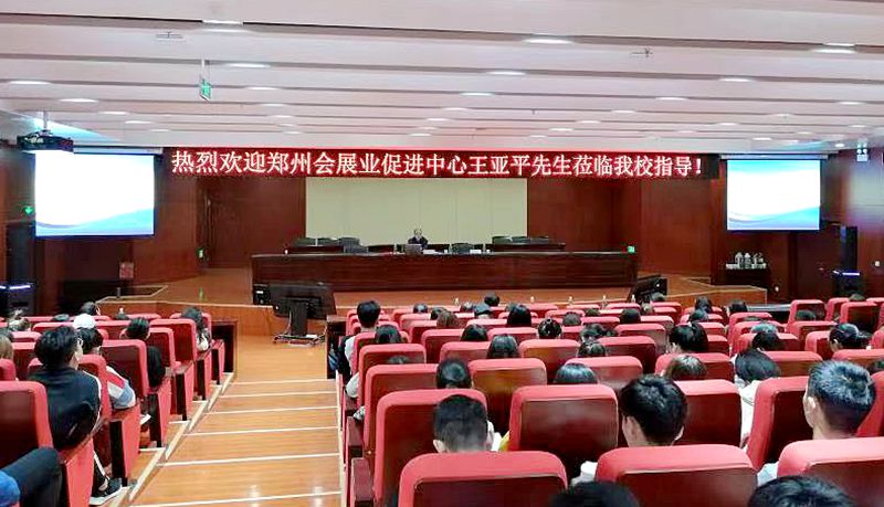 王主任从会展的内涵和会展产业联入手,阐述了会展业在城市经济发展和人民生活中的重要地位,并结合自己近15年的从业经历和展会流程提出成功展会的重要影响因素;从发展历程、场馆、专业会展公司、品牌展会项目等阐述郑州市会展业的发展现状,提出在多维国家战略的影响下,郑州市会展业未来必将在专业化、品牌化、市场化、国际化、信息化等方面获得长足发展,打造国家会展中心城市,建设国际会展名城。谈到行业的人才需求,王主任指出随着会展业的飞速发展,郑州市对高端会展策划和运营人才需求急迫,希望同学们能够加强在学习、沟通、组织、执行、策划、创新等方面的能力提升,扎根会展业,服务家乡会展经济。