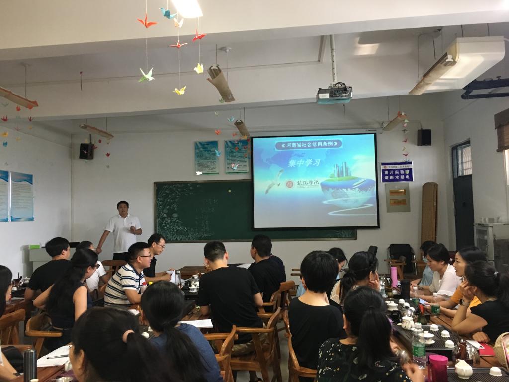 为进一步加强《河南省社会信用条例》的贯彻落实,推进教育系统信用建设,积极弘扬社会主义诚信价值观营造学条例、用条例、守条例的浓厚氛围,根据学校《关于学习宣传<河南省社会信用条例>的通知》文件精神要求,7月7日,beat365在线体育官网登录入口组织全院教师于二号教学楼C610室开展了《河南省社会信用条例》专题教育学习活动。