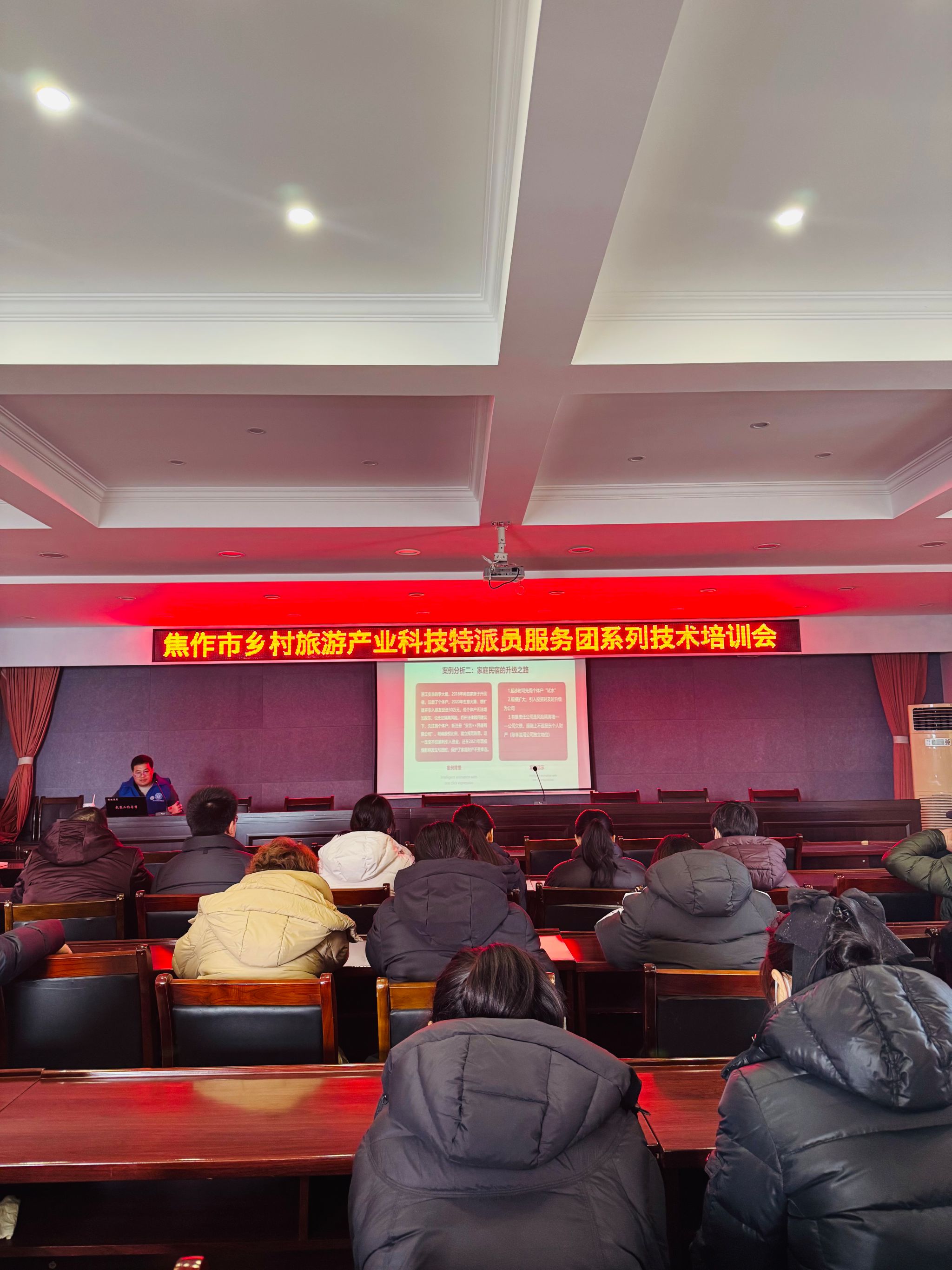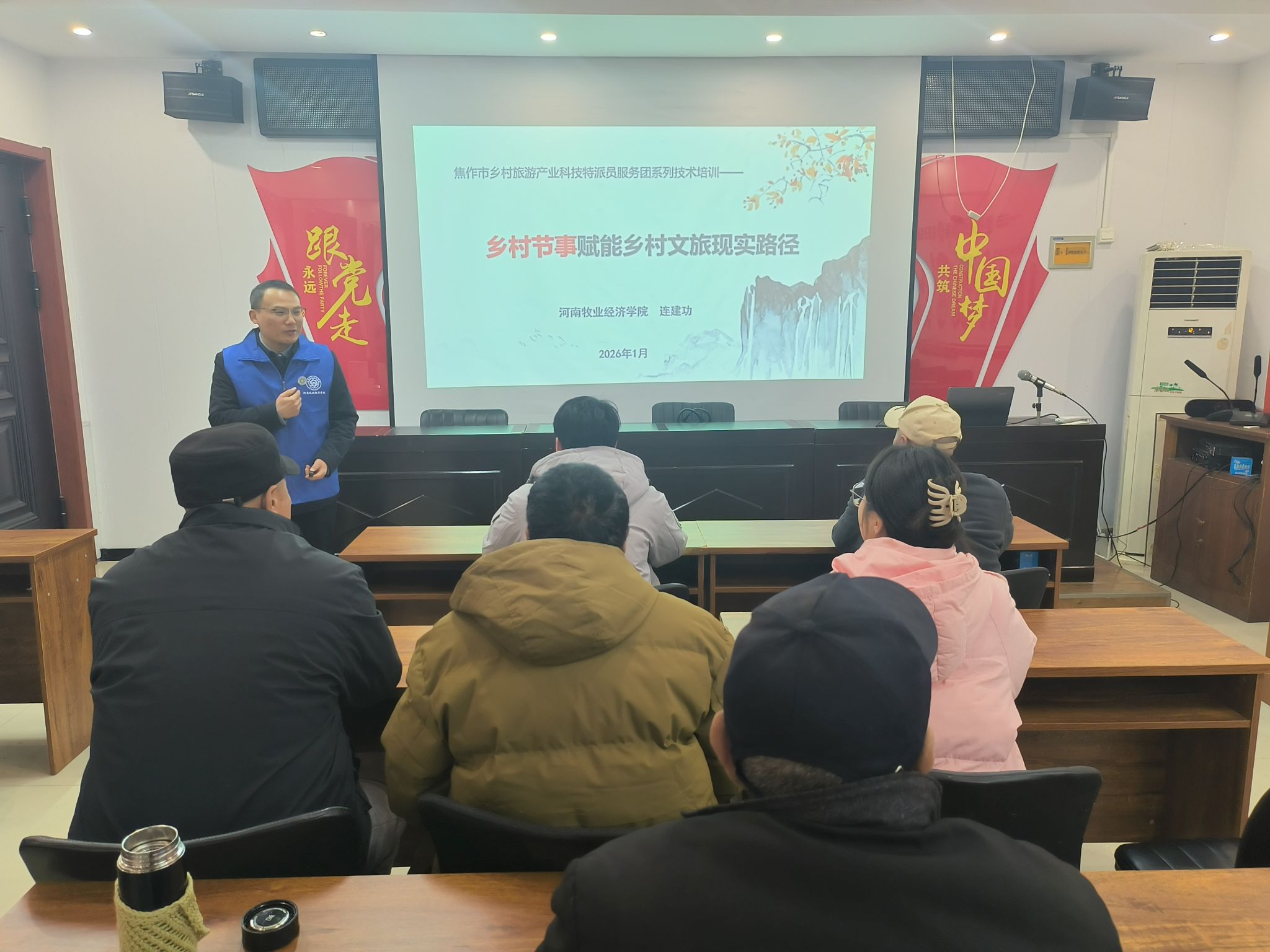 为深化乡村振兴战略实施,助力焦作市解放区乡村旅游产业高质量发展,1月28日下午beat365在线体育官网登录入口院长王中雨带领乡村旅游产业科技特派员服务团一行4人赴焦作市解放区开展专题技术培训当地文旅从业者、基层干部及村民代表参加培训,现场反响热烈。