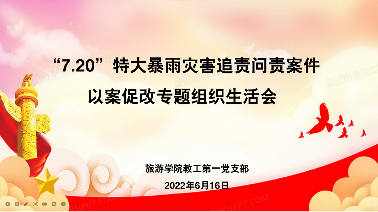 beat365在线体育官网登录入口教工第一党支部召开“7·20”特大暴雨灾害 追责问责案件“以案促改”专题组织生活会
