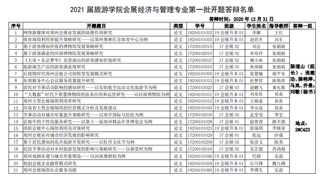 beat365在线体育官网登录入口2021届会展经济与管理专业第一批本科毕业论文 开题答辩公告