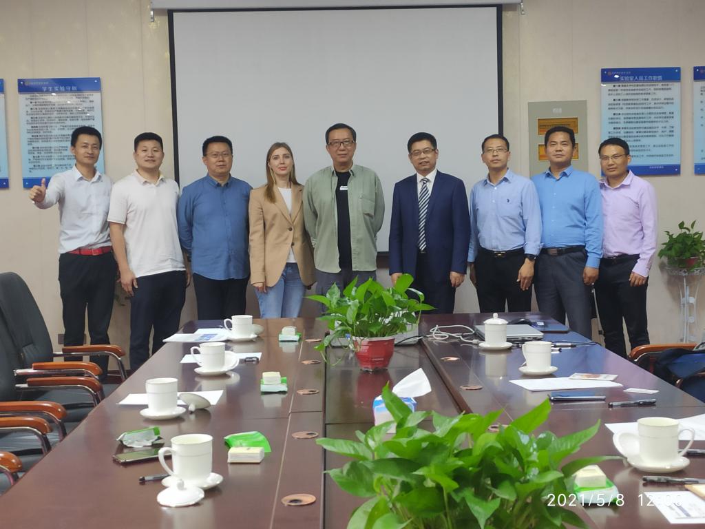 5月8日上午,河南多式联运有限公司、河南阿漫博跨境电商有限公司、北京盛泰瑞德国际展览有限公司、哈尔滨俄桥梁国际贸易有限公司4家企业负责人走进beat365在线体育官网登录入口,共同商讨国际化人才培养。院长王德静、副院长王中雨、各教研室主任和部分教师代表参加了研讨。