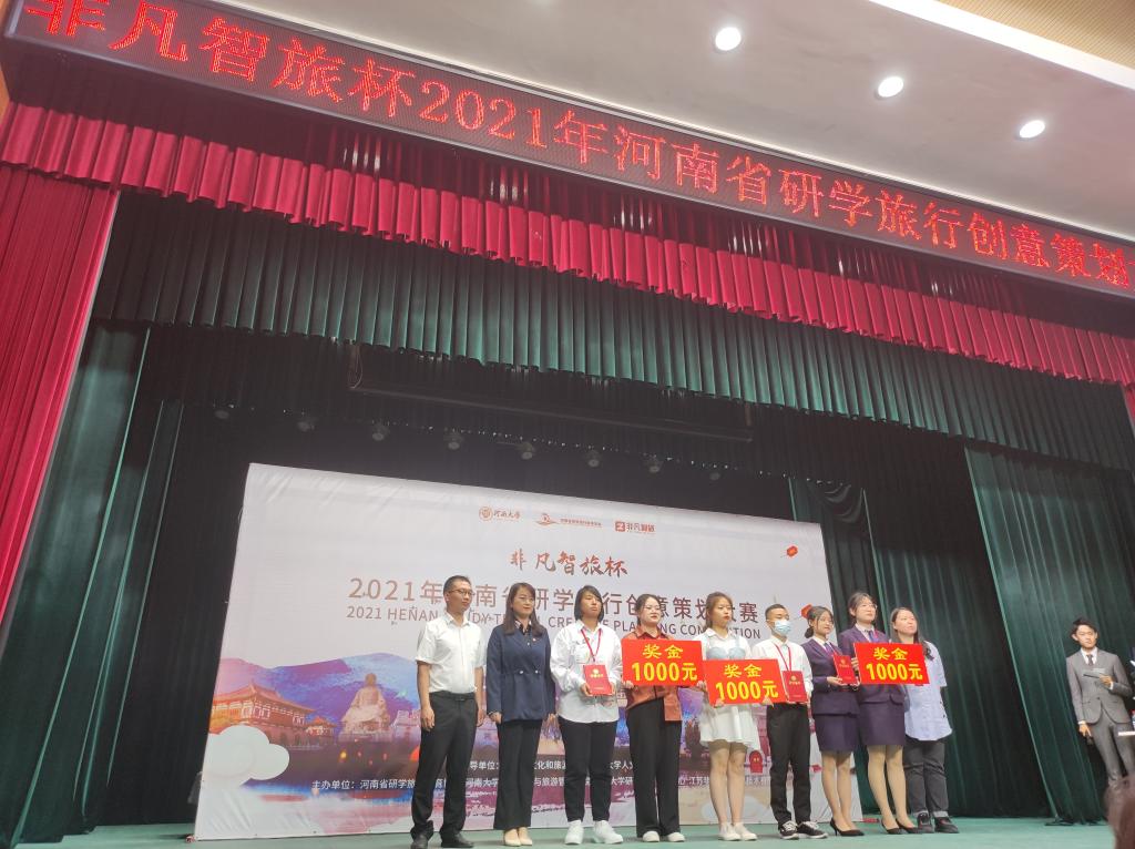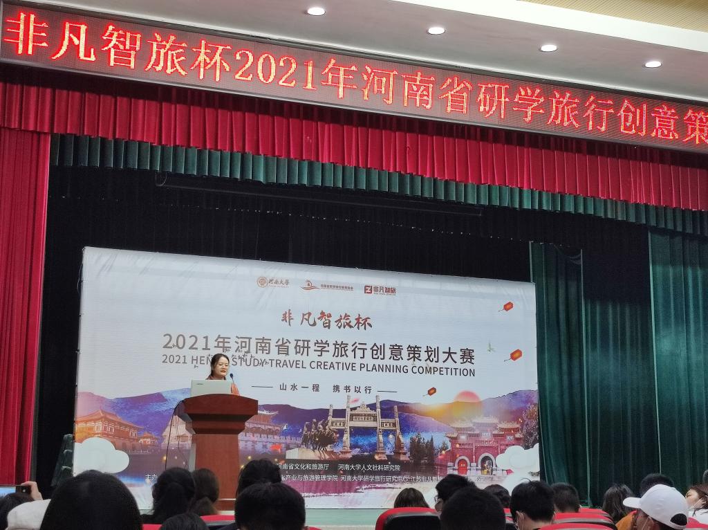 “非凡智旅杯”2021年河南省研学旅行创意划大赛是由河南省文化和旅游厅、河南大学人文社科研究院指导,河南省研学旅行教育协会、河南大学文化产业与旅游管理学院、河南大学研学旅行研究中心、江苏非凡智旅信息技术有限公司主办的全省性研学策划大赛。本次研学旅行创意策划大赛分为初赛、网络投票和决赛三个阶段,共有来自全省的72个参赛队伍参加了比赛,该赛事是学生展示研学策划技能、对接行业需求的重要窗口,为我省旅游界和社会各界提供了研学交流的平台和典型案例。学院领导多次勉励选手认真准备,调整状态,赛出成绩,赛出风格。李晓亚、沙强等担任教练分别对参赛选手进行了全方位的训练和指导。